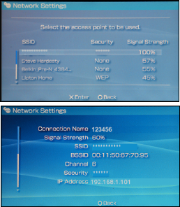 the PSP. Confirm the SSID, and enter the