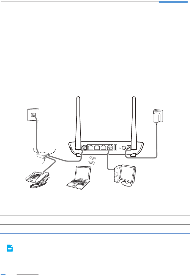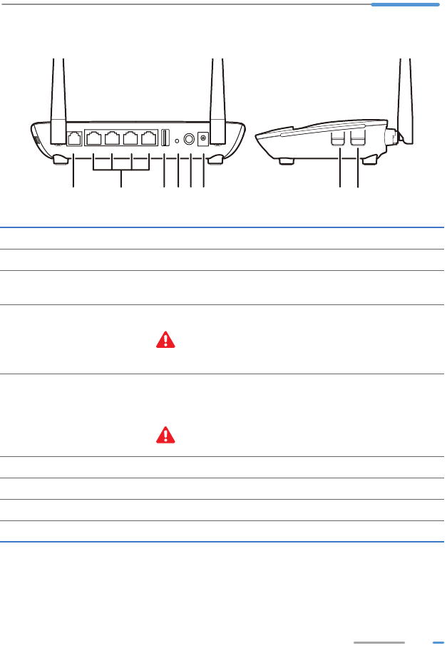 2LAN1 ~LAN4 Connects to Ethernet devices, such as computers, set-top boxes