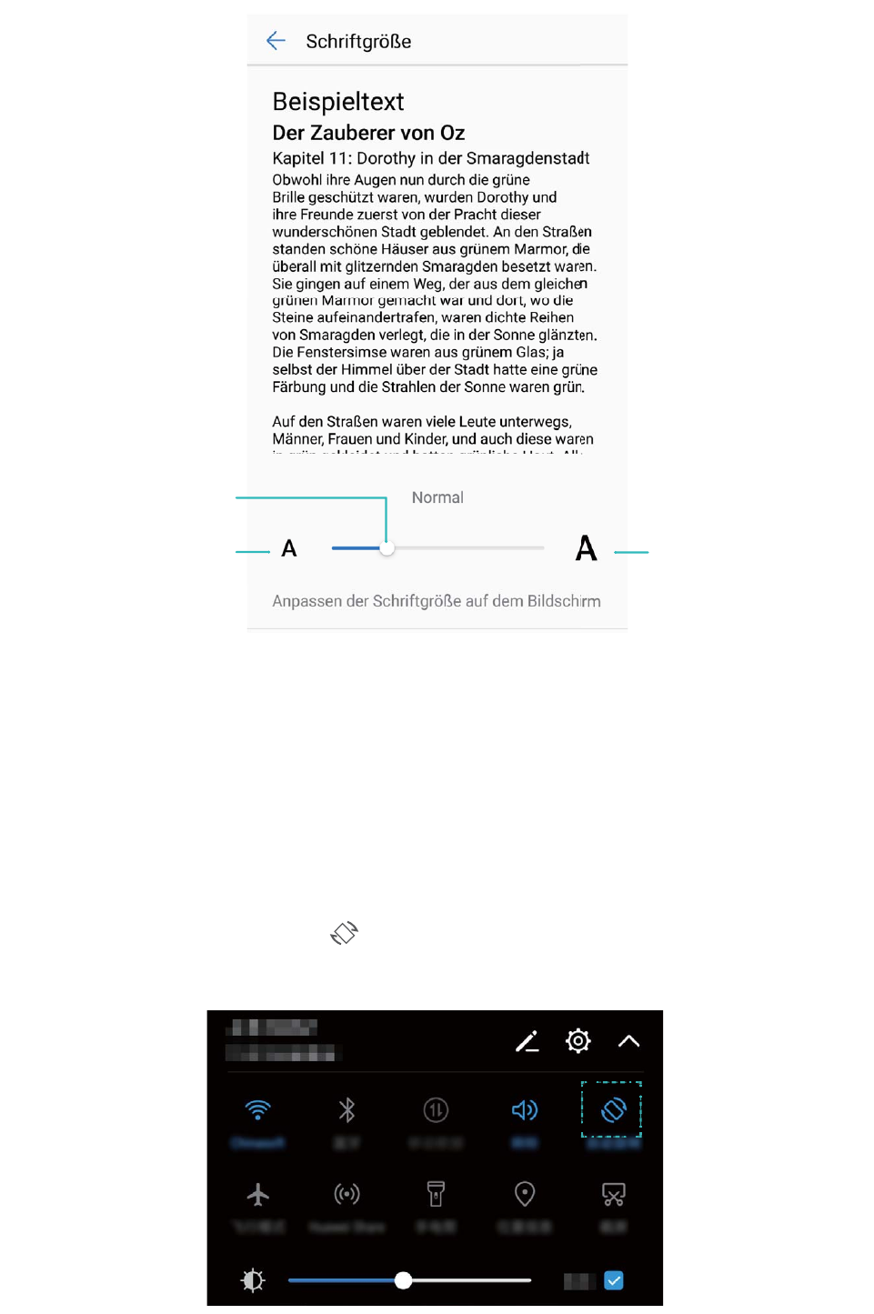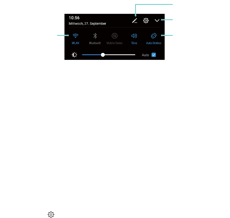 von der Statusleiste nach unten. Tippen Sie im Benachrichtigungsfeld auf , um das