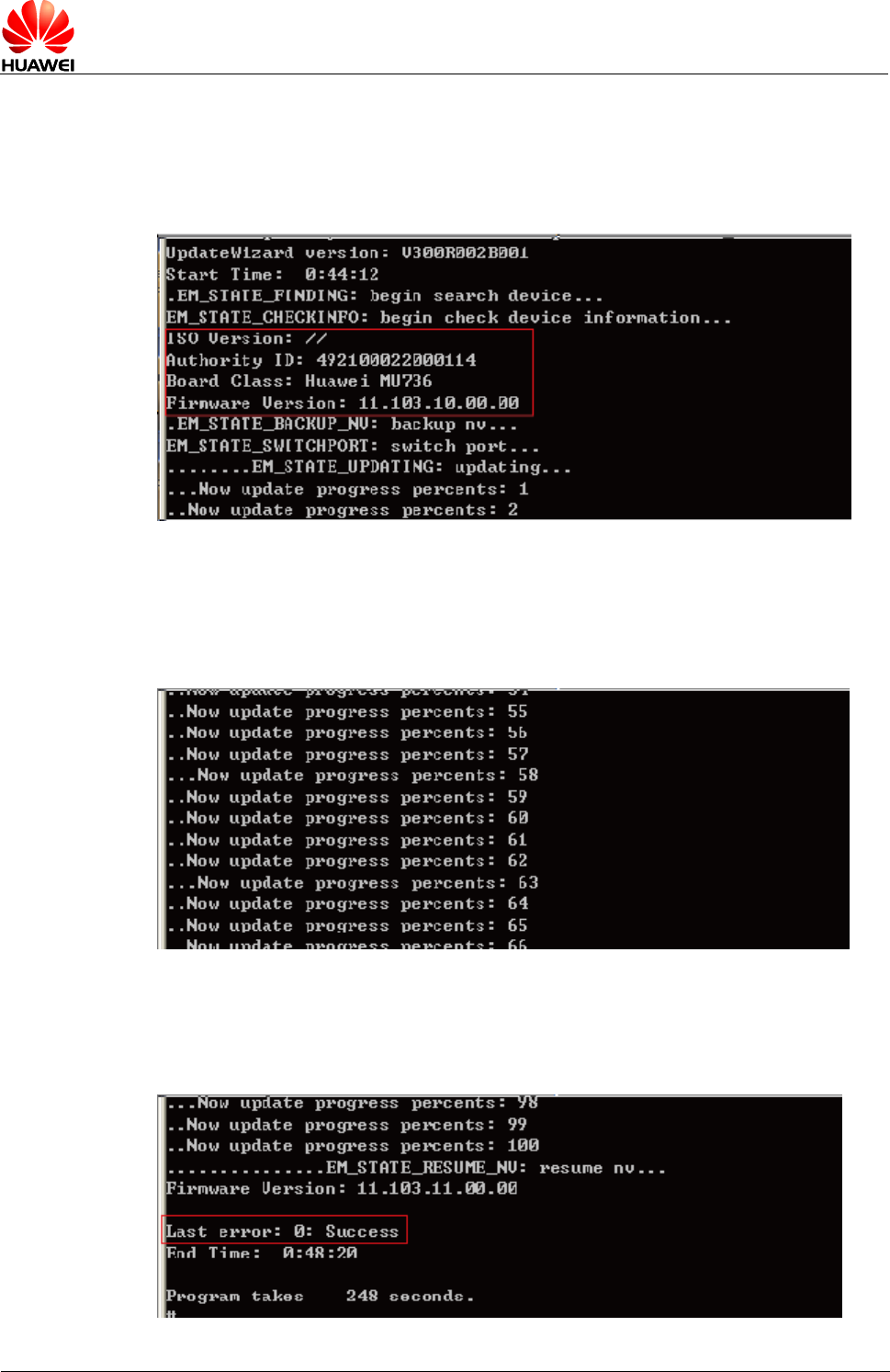 - Step 4 When the module is found, the upgrade progress will be displayed as the following two figures.