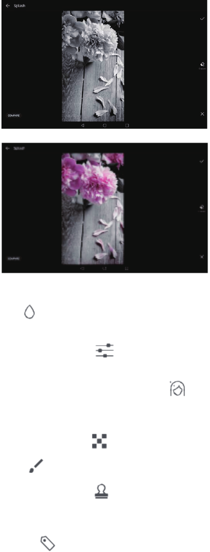 - • Définir la photo comme fond d’écran d’accueil ou l’affecter à un contact : touchez / > Définir en tant que > Fond d’écran ou Photo de contact.