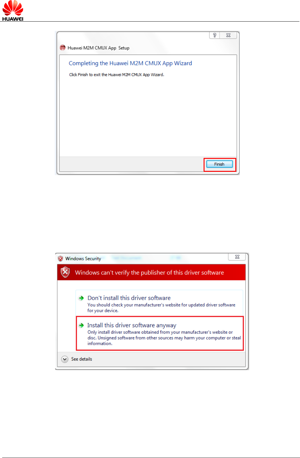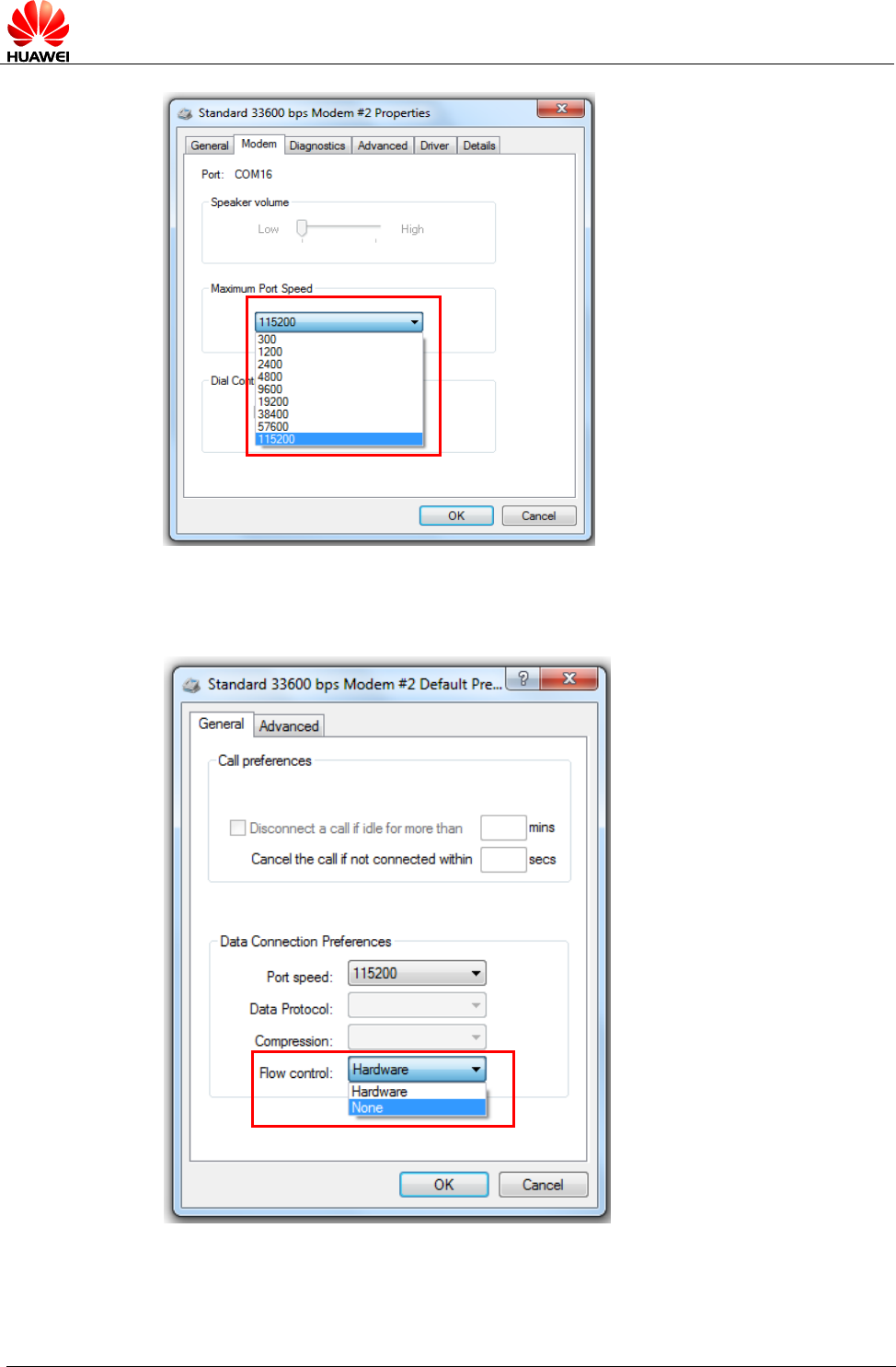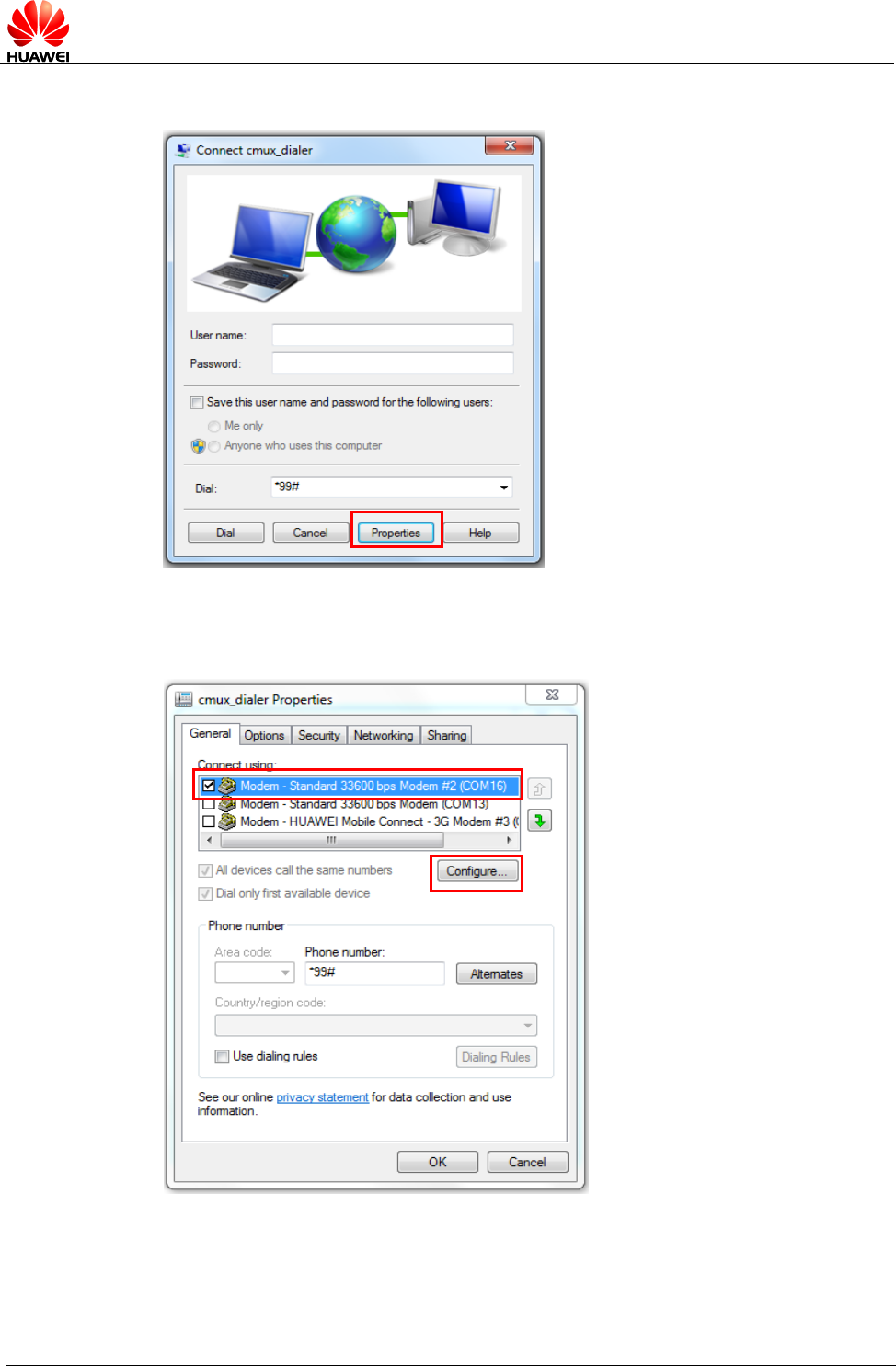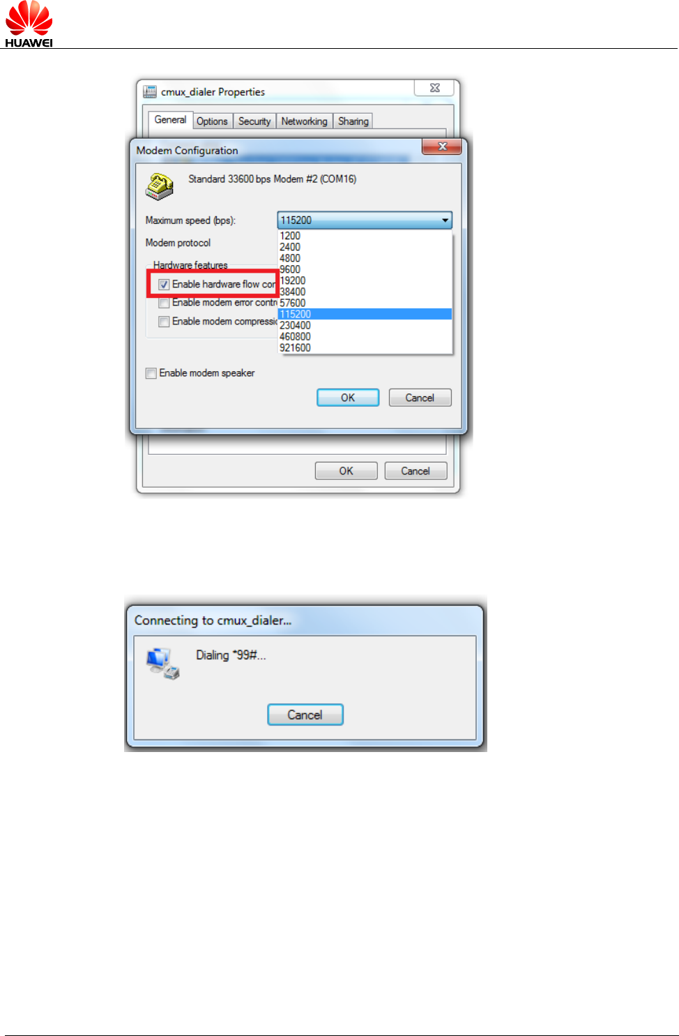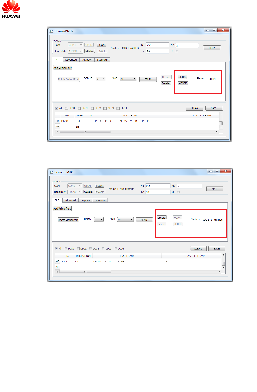 - Huawei module supports the CMUX basic option and UIH frames. The serial port
