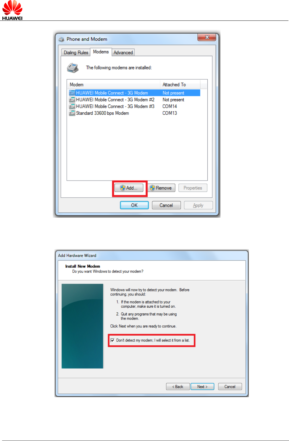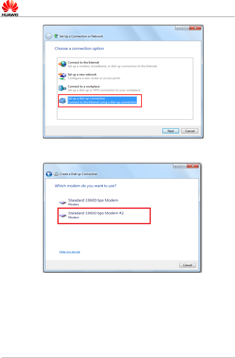 Step 3 Select the modem from the list (if more than one modems are configured). Click