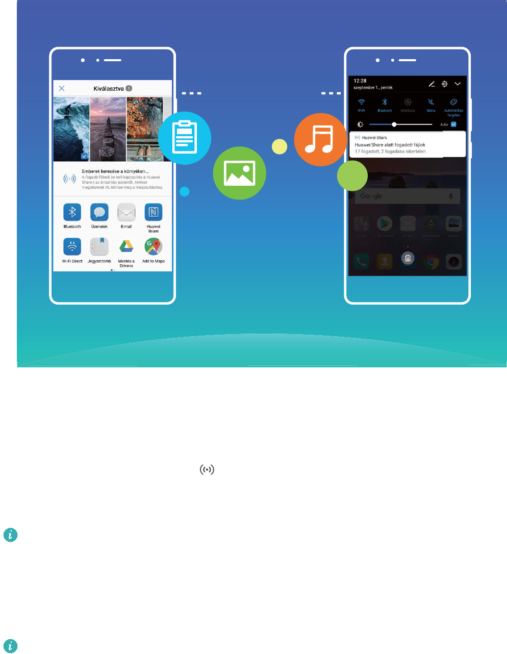 - Fájlok gyors megosztása a Huawei készülékeken a Huawei Share szolgáltatással