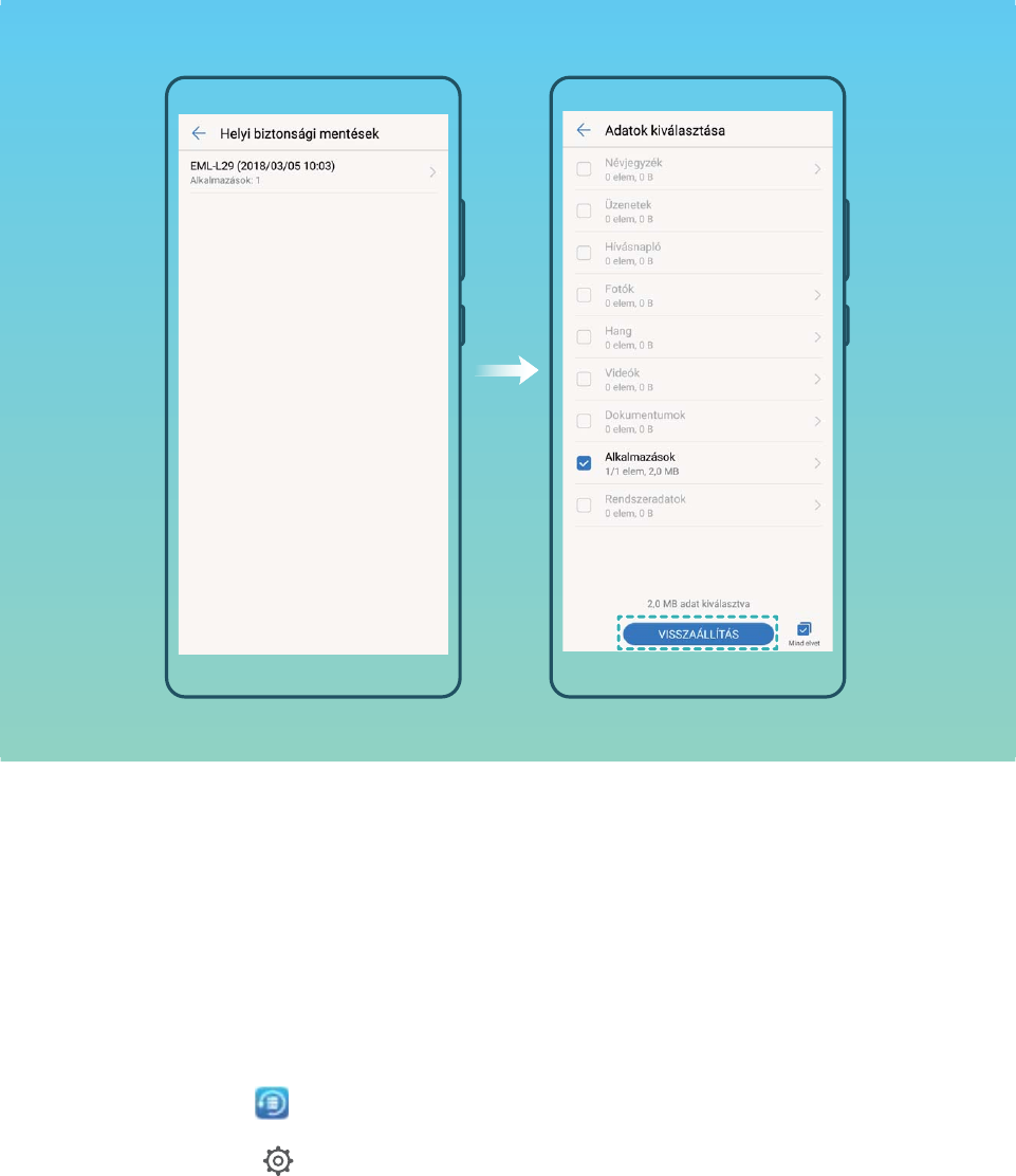 - Biztonsági mentési adatok keresése a Telefon készüléken