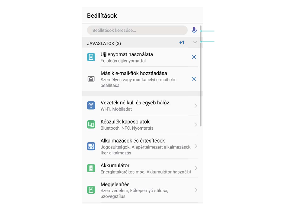 - Intelligens beállítások használata a beállítások gyors megtalálásához