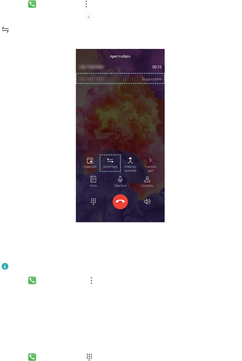 - Activarea serviciului de apel în așteptare pentru a nu pierde niciodată apelurile importante de la terțe părți