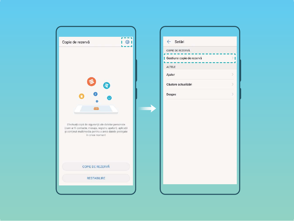 - Crearea de copii de rezervă ale datelor utilizând HiSuite