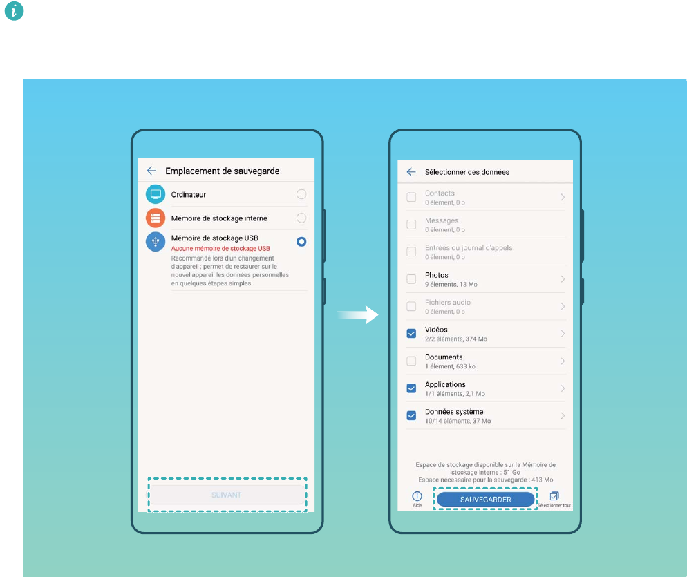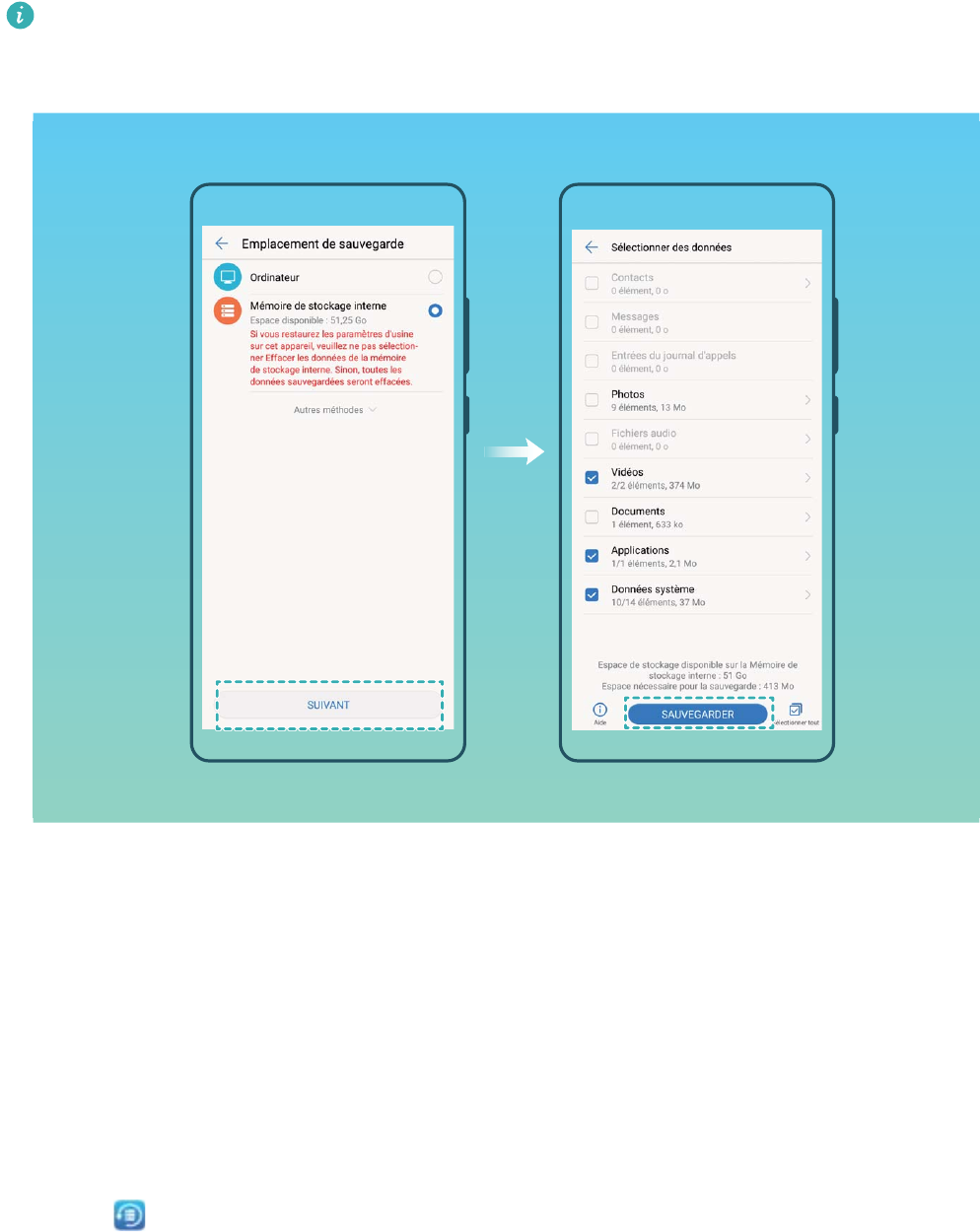 - Effectuer une sauvegarde de vos données vers le stockage interne de votre appareil