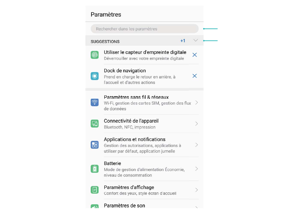 - Utiliser le mode Paramètres intelligents pour trouver un paramètre rapidement