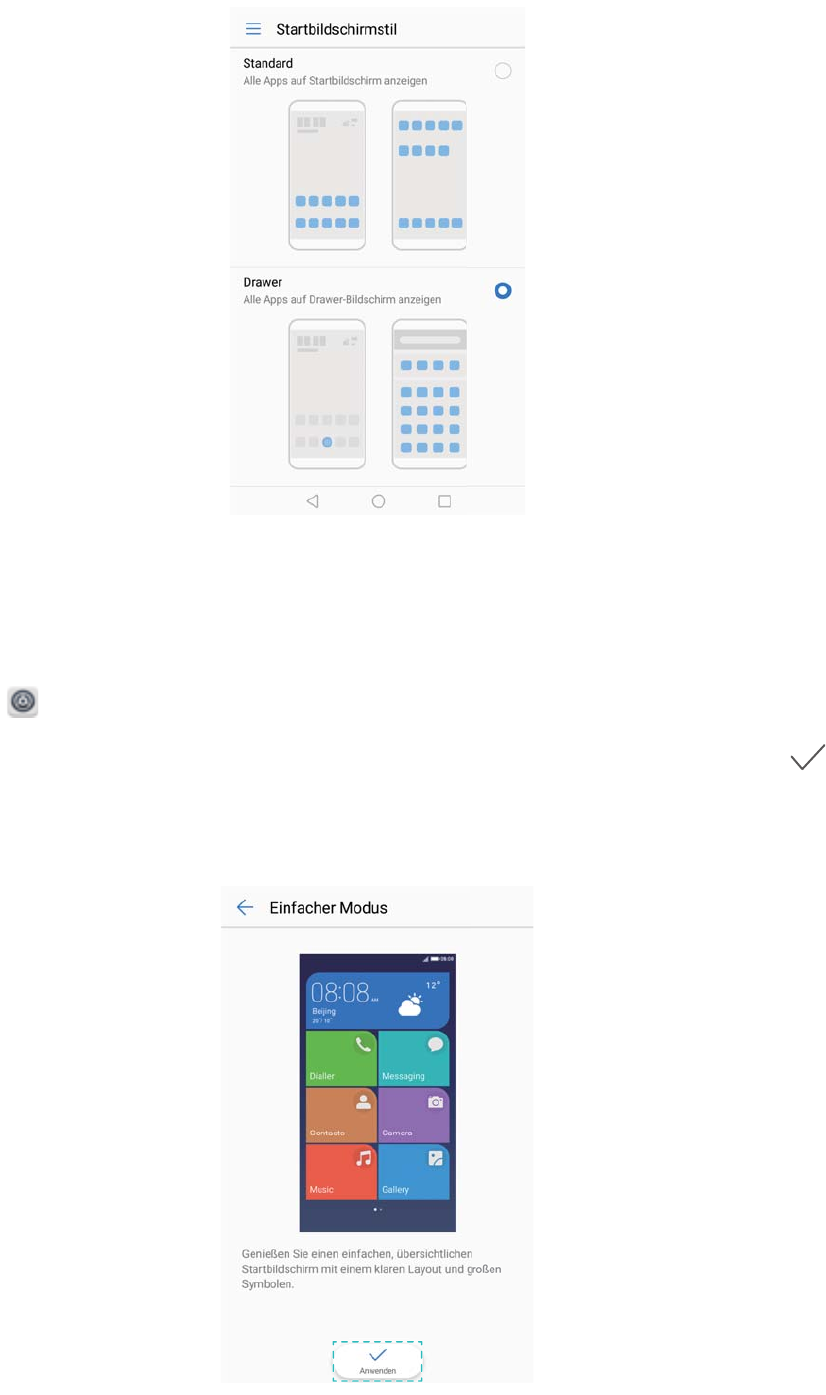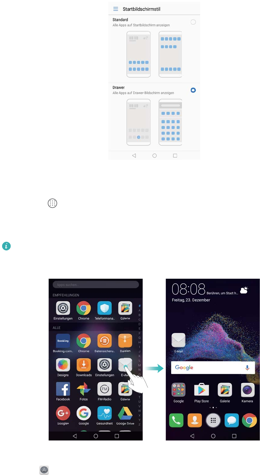 - Aktivieren des Drawer-Startbildschirms