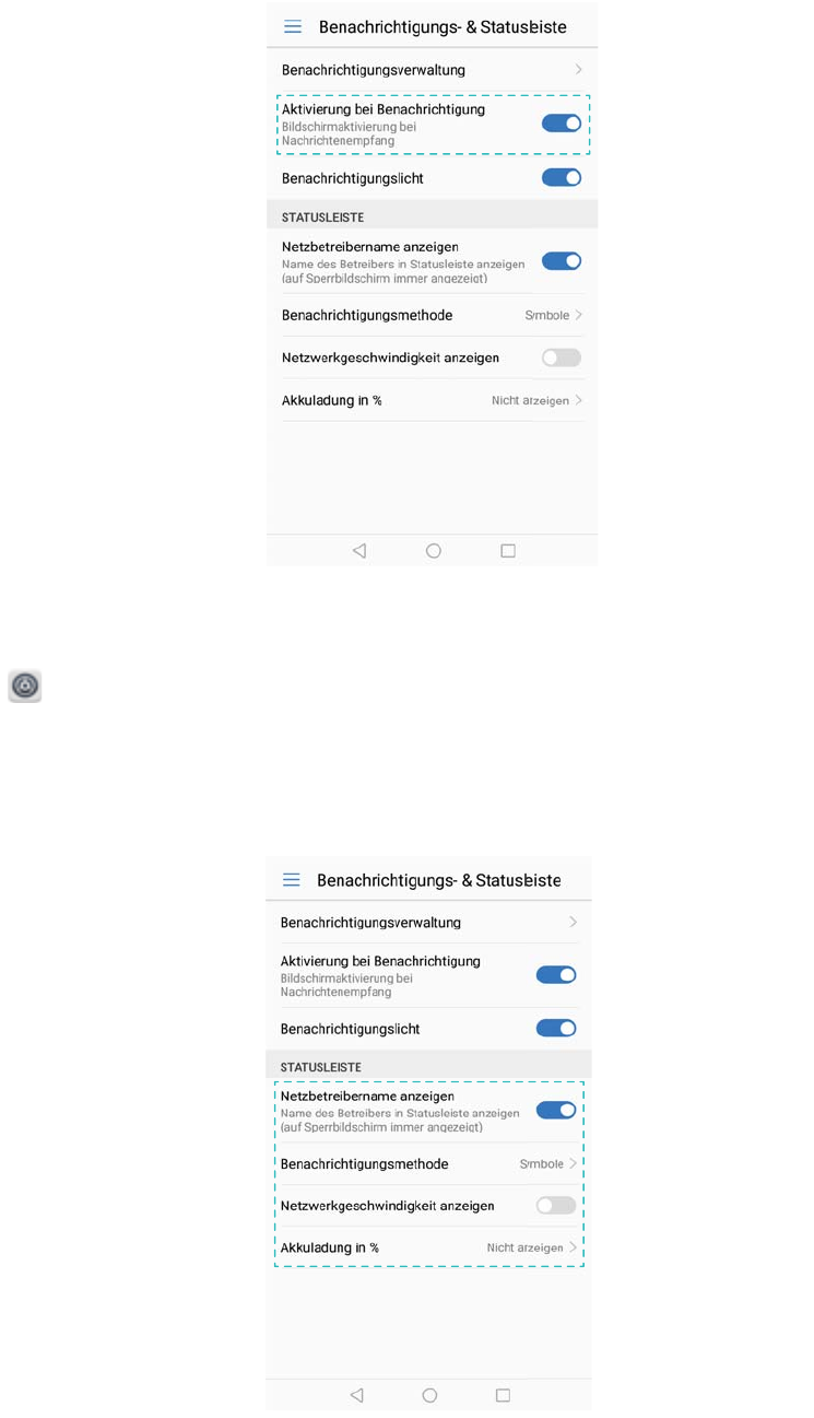 - Konfigurieren des Benachrichtigungsfelds und der Statusleiste