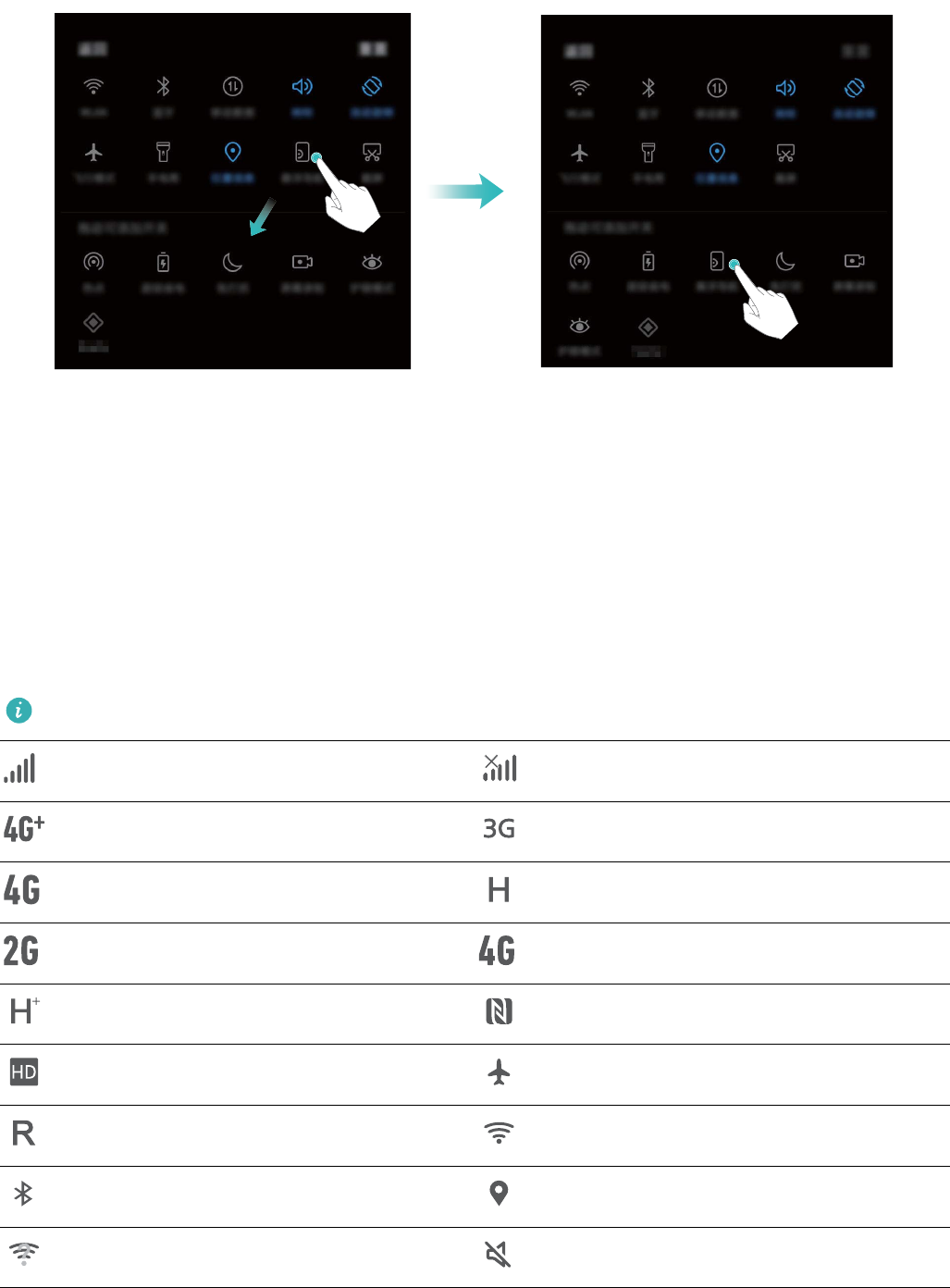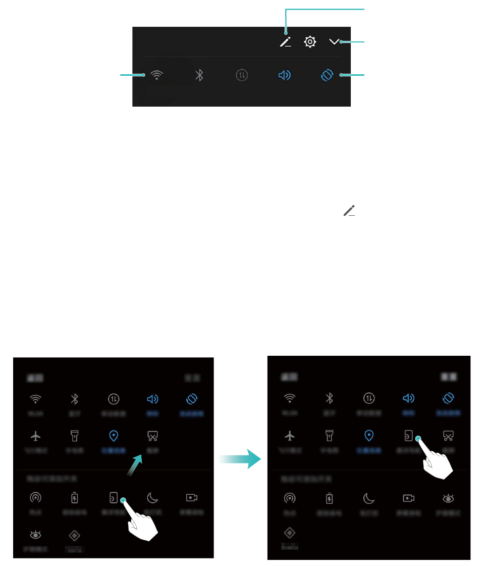 panel. On the notication panel, touch to display more shortcut switches. Touch to enable