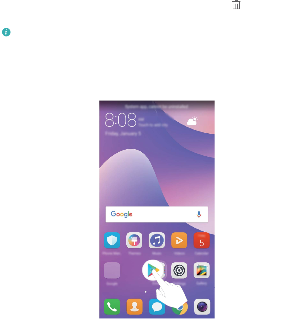 Si mantiene pulsado el icono de una aplicación y no se crea un acceso directo, signica que la