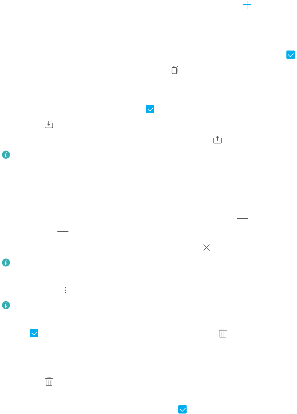 aplicación y no se pueden cambiar. Por ejemplo, para hacer una sele, mantenga pulsado el icono de