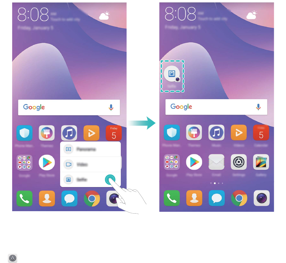 directo para la función de seles de la cámara para acceder rápidamente a la cámara para hacer
