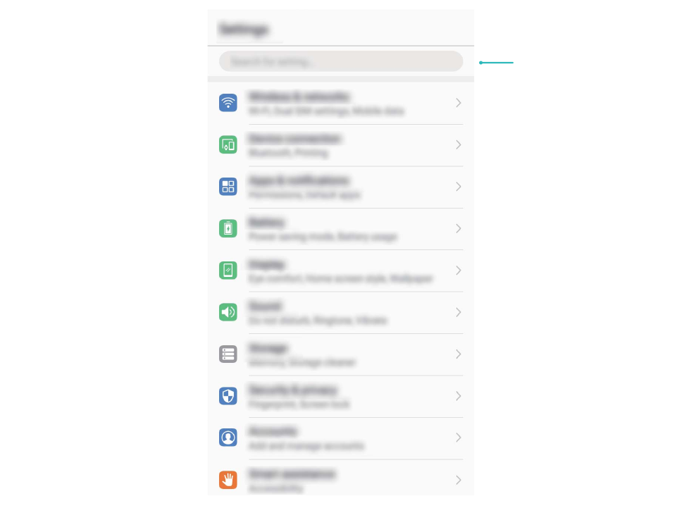introducir una palabra clave o un sinónimo en la barra de búsqueda y el dispositivo mostrará todos los