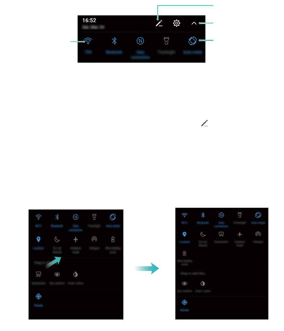 From the notication panel, touch to open the shortcuts panel and then touch .