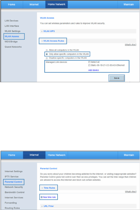 On the web management page, enable URL filtering and set up a URL whitelist. Your computer