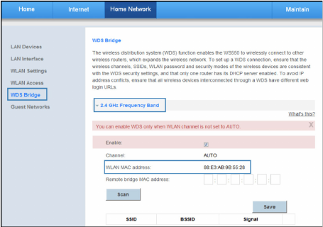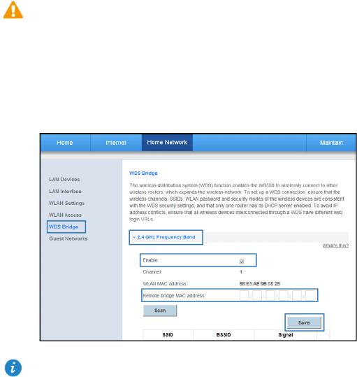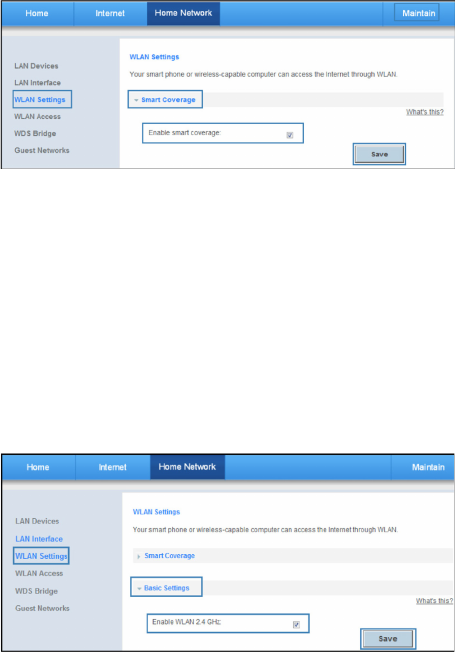 When the WS550 is connected to Huawei wireless routers and repeaters that support the smart
