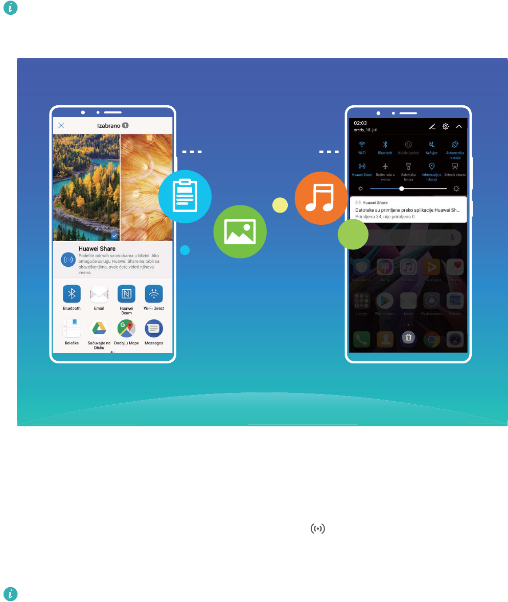 - Prenos datoteka između Telefon i računara korišćenjem funkciju Huawei Share