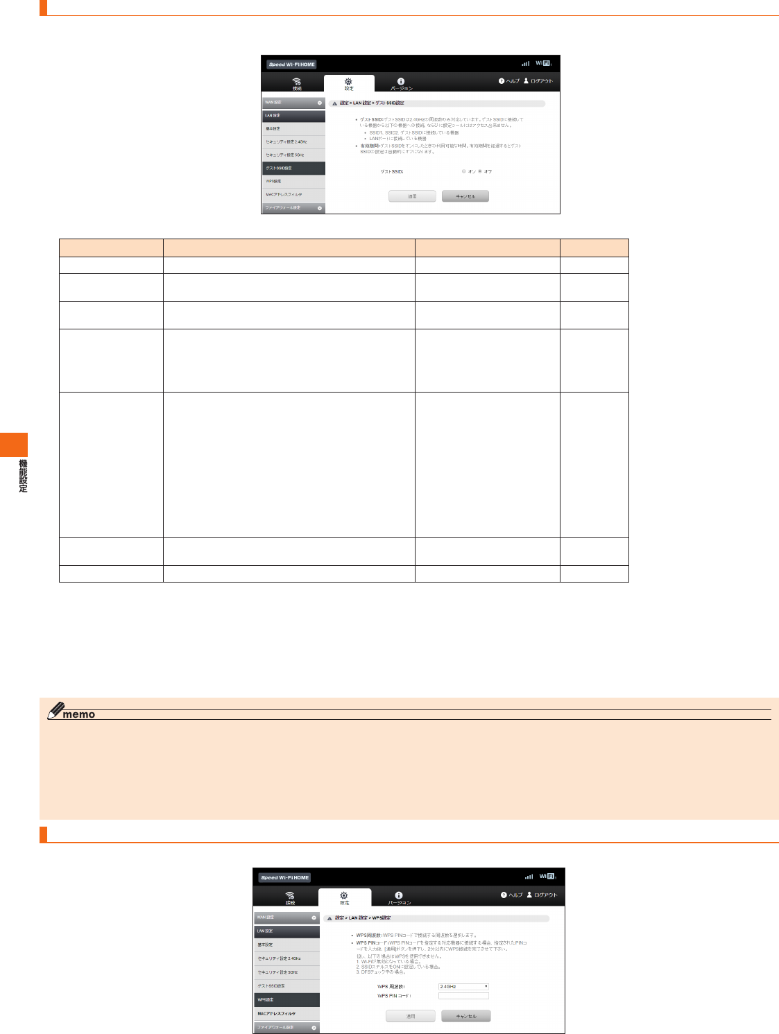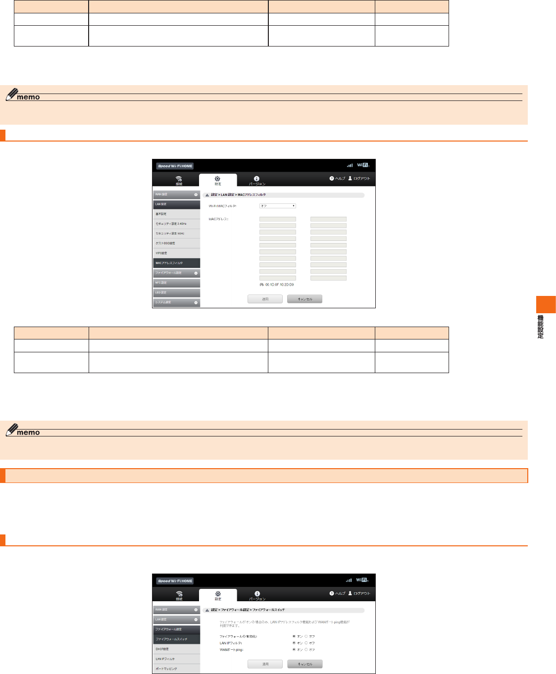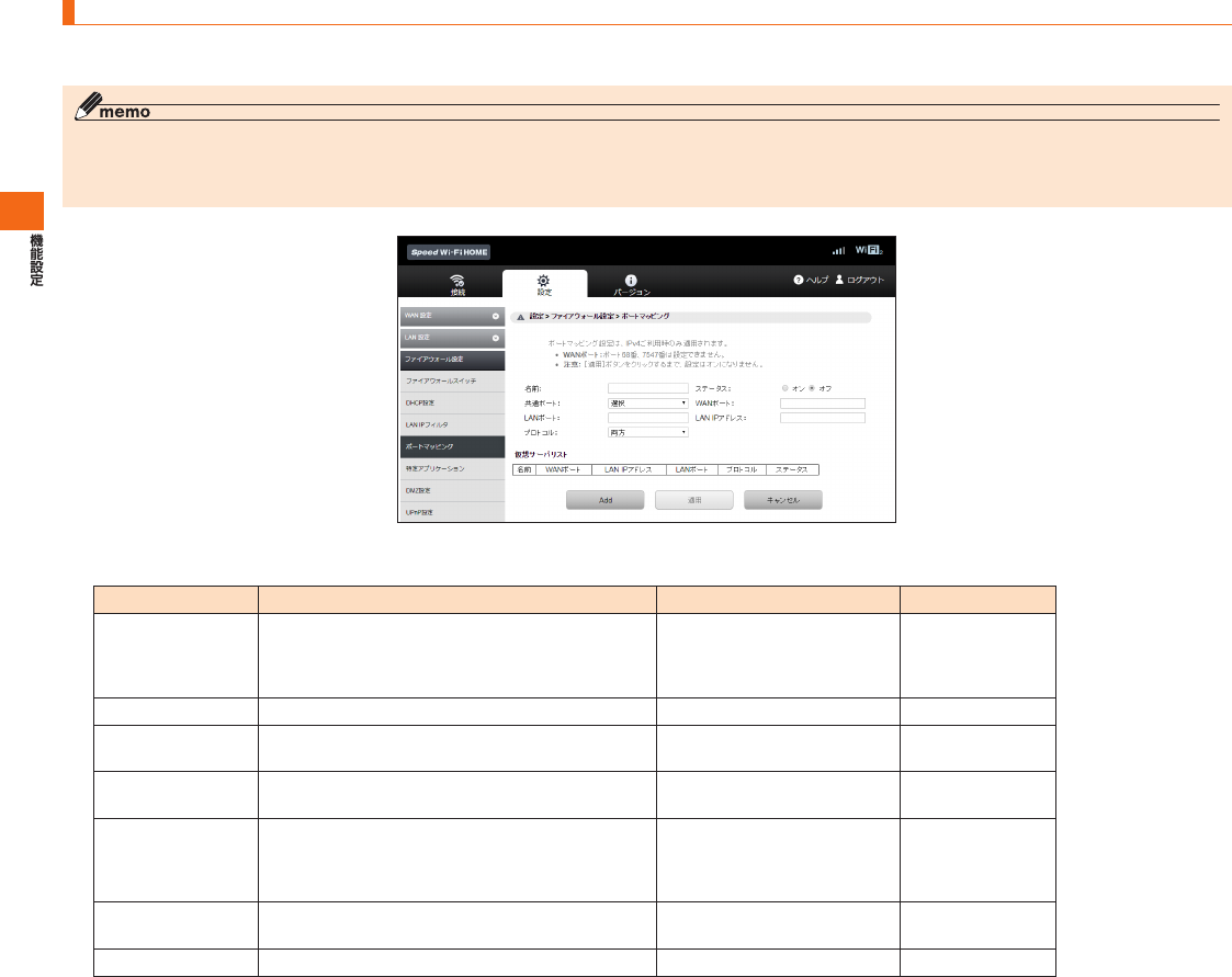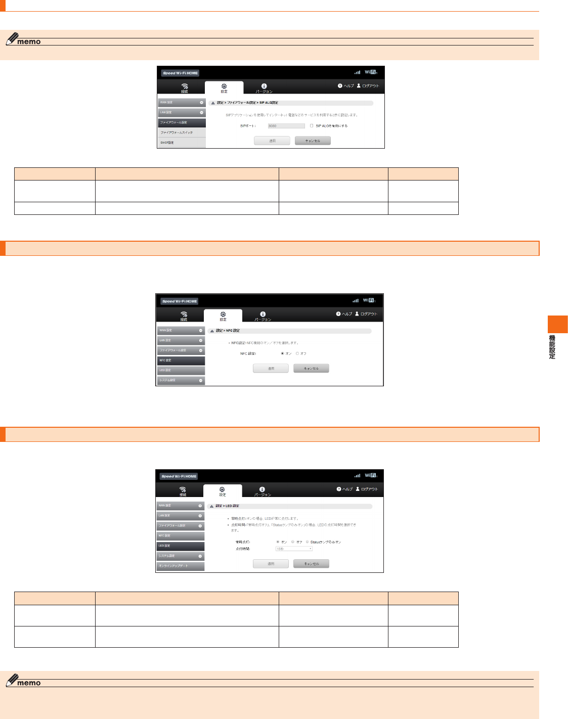SpeedWi-FiHOME設定ツール メニュー項目/設定項目一覧