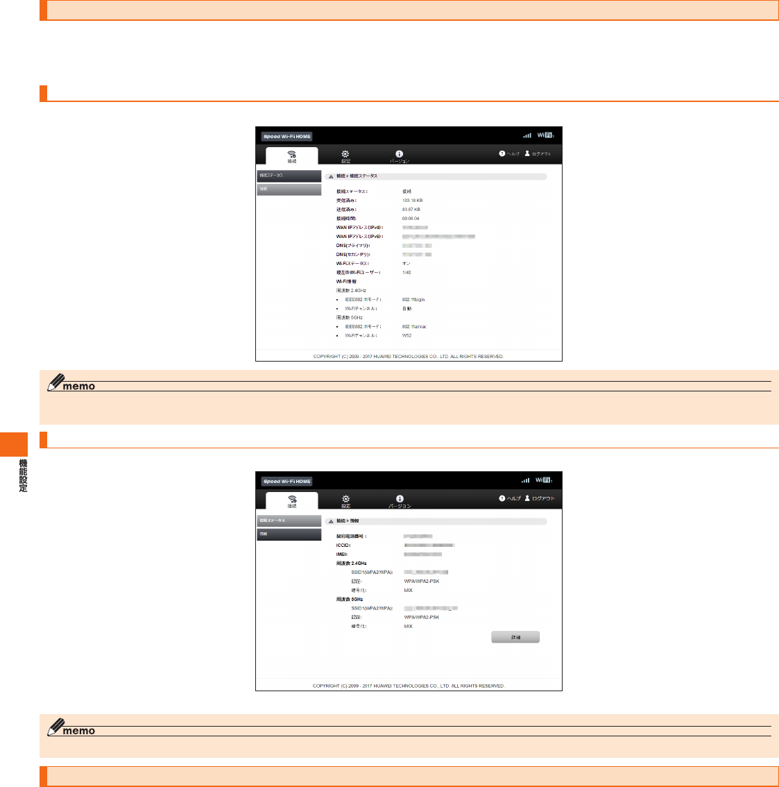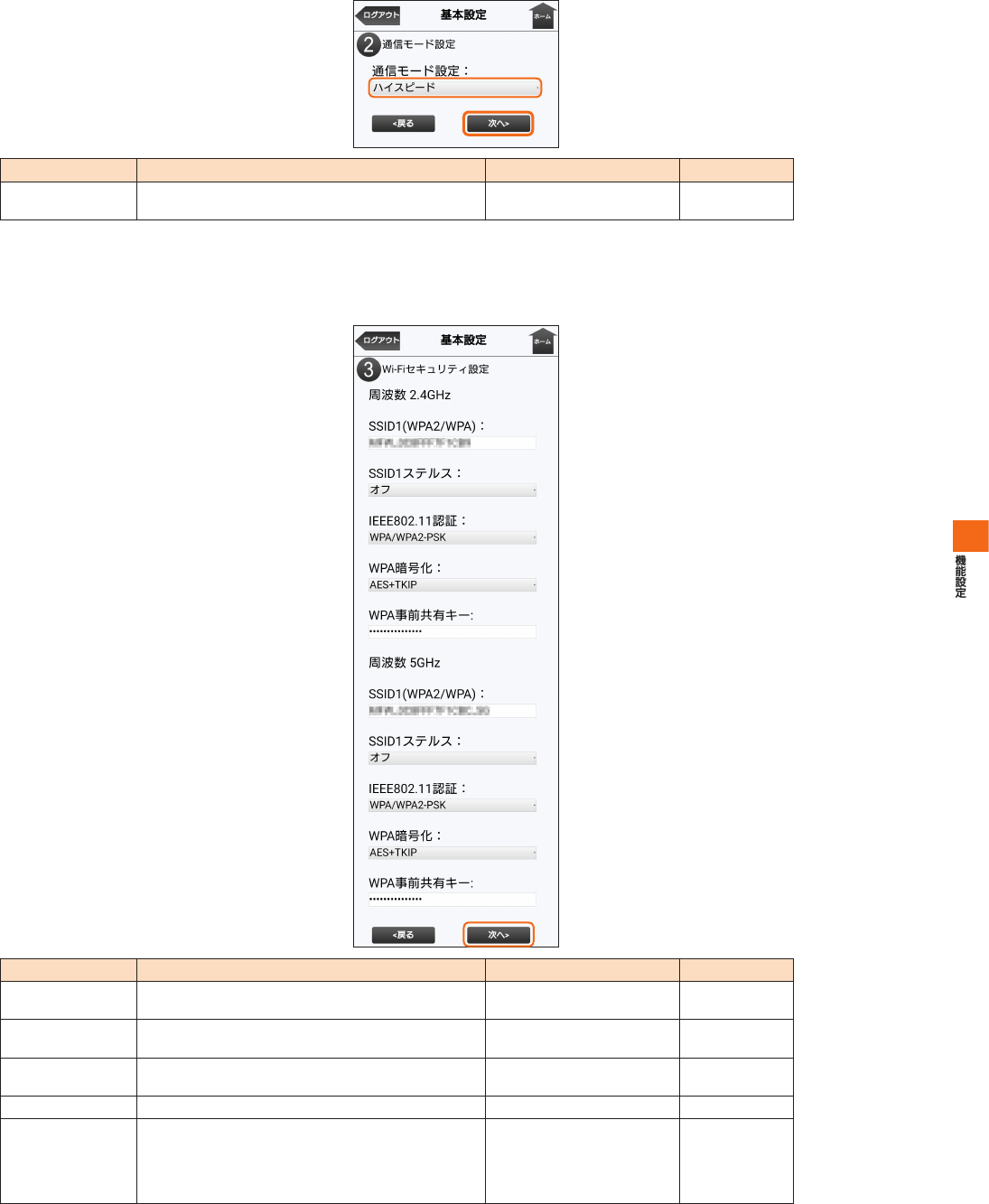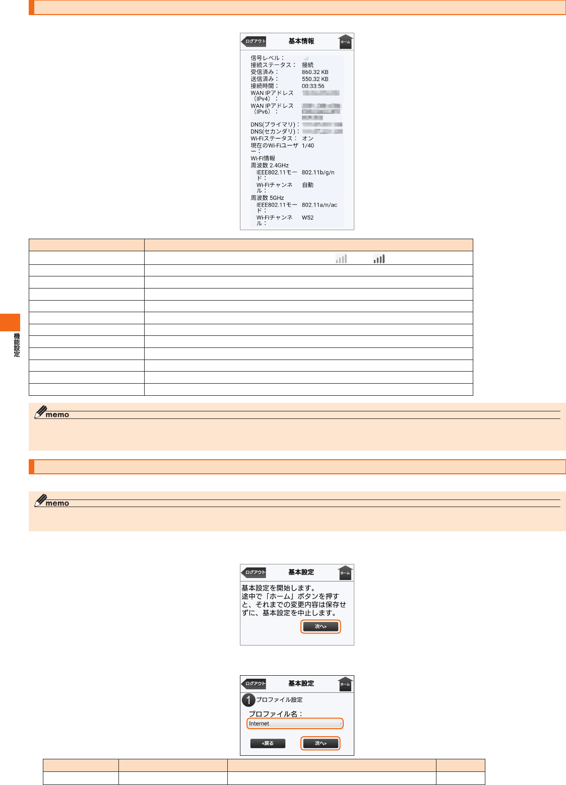 SpeedWi-FiHOME設定ツール メニュー項目/設定項目一覧