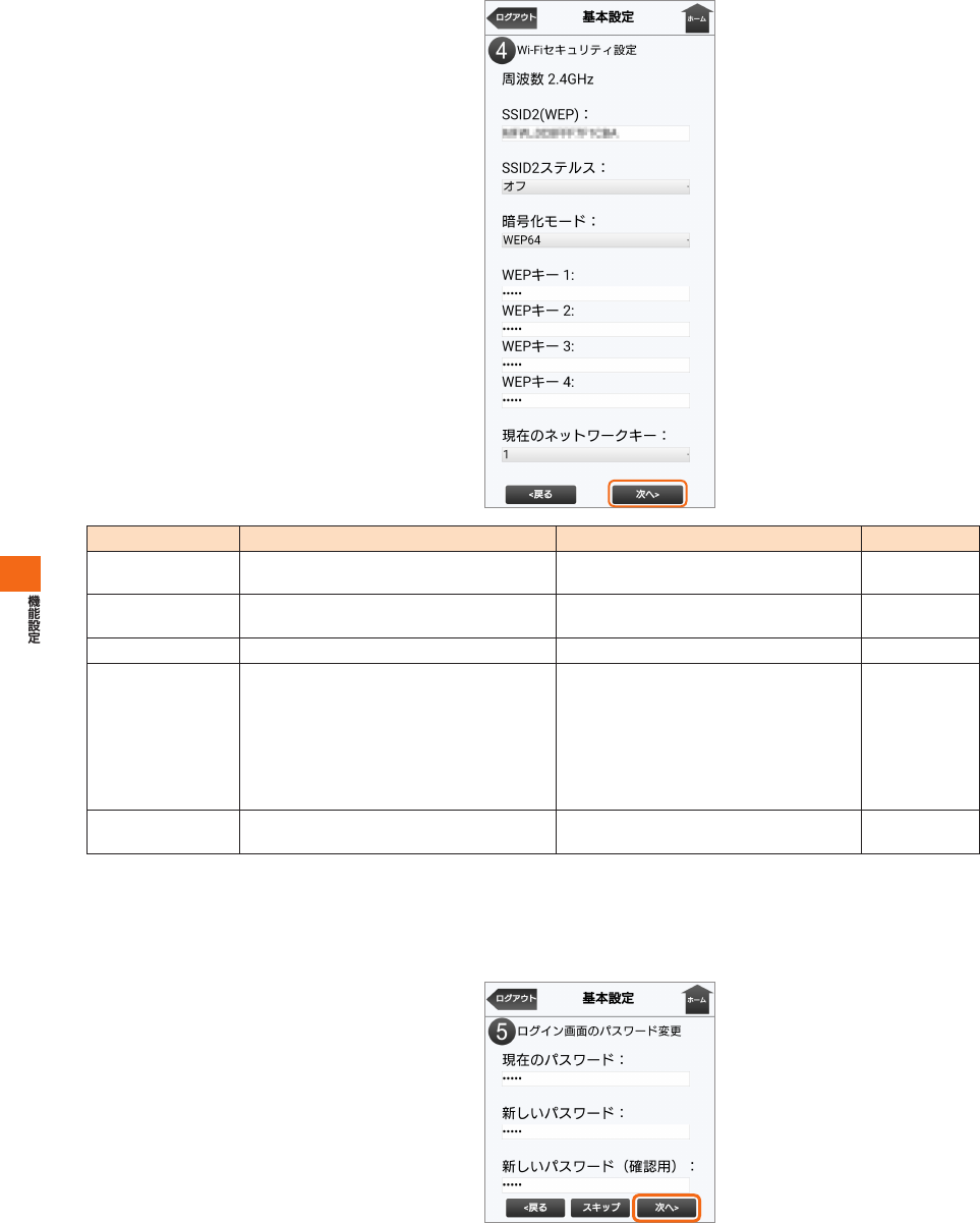 SSID2(WEP)の各項目を設定し、「次へ>」を選択する