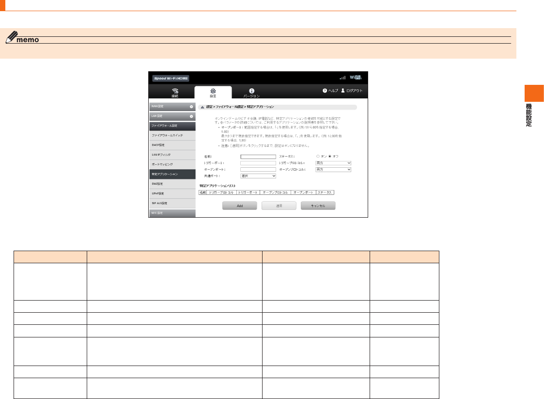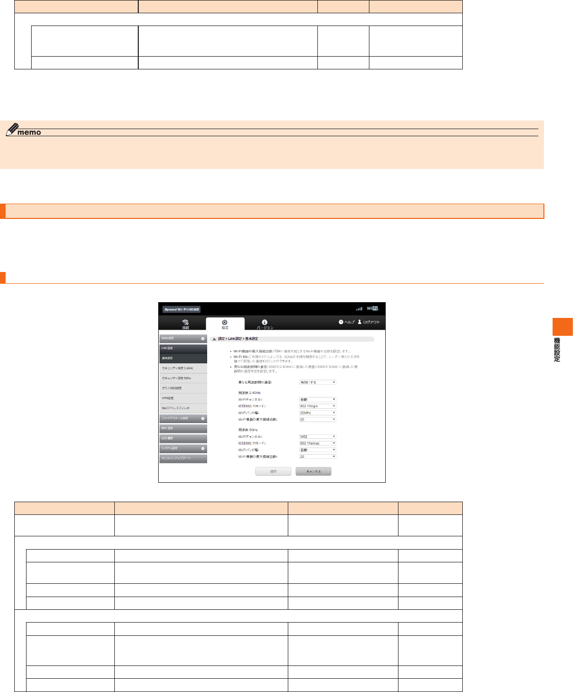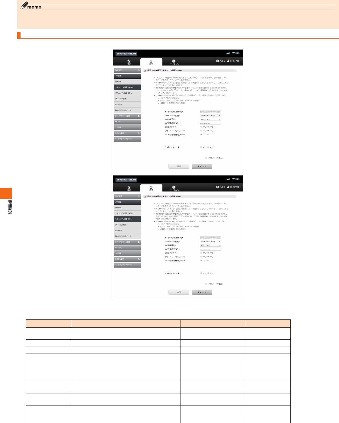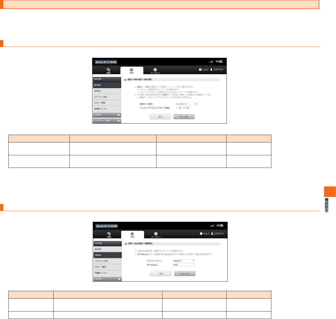 SpeedWi-FiHOME設定ツール メニュー項目/設定項目一覧