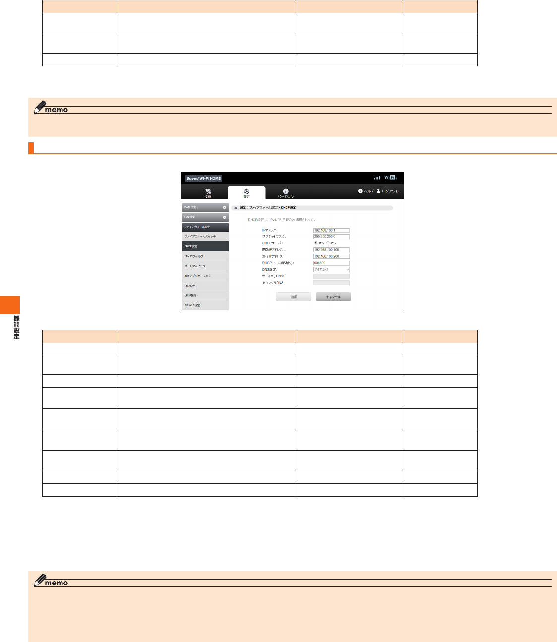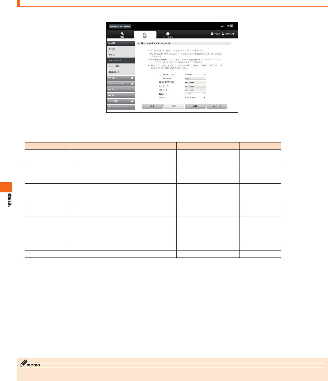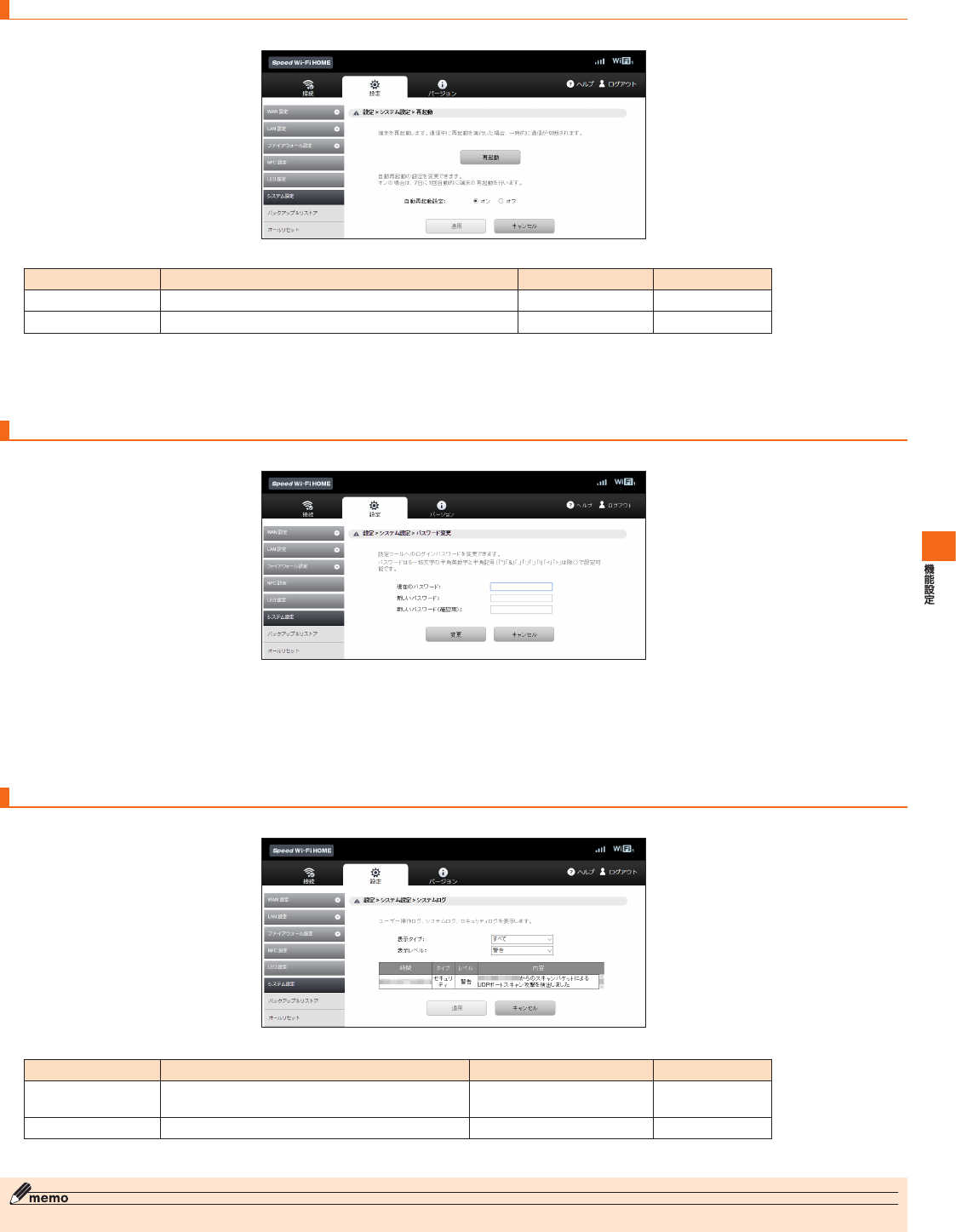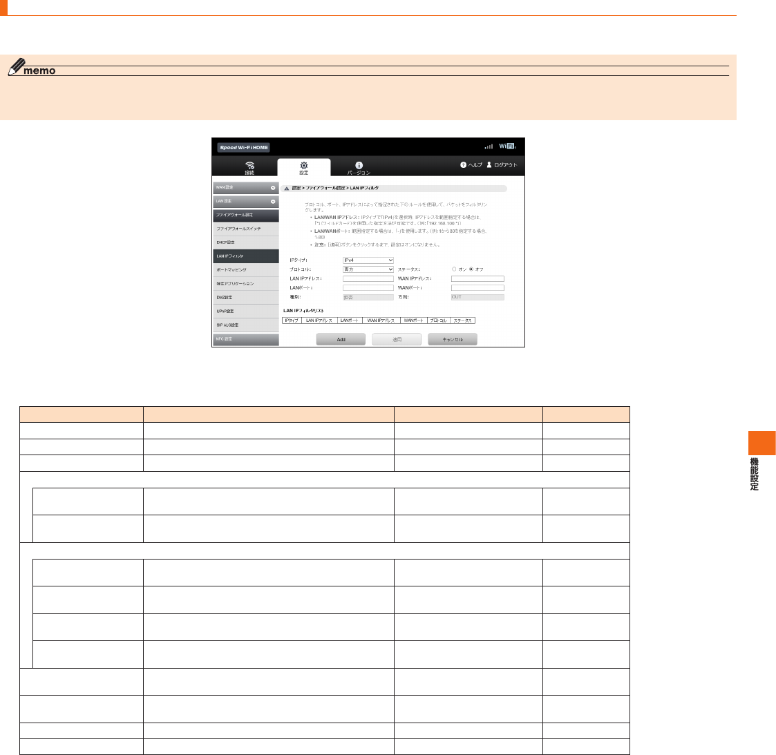 SpeedWi-FiHOME設定ツール メニュー項目/設定項目一覧