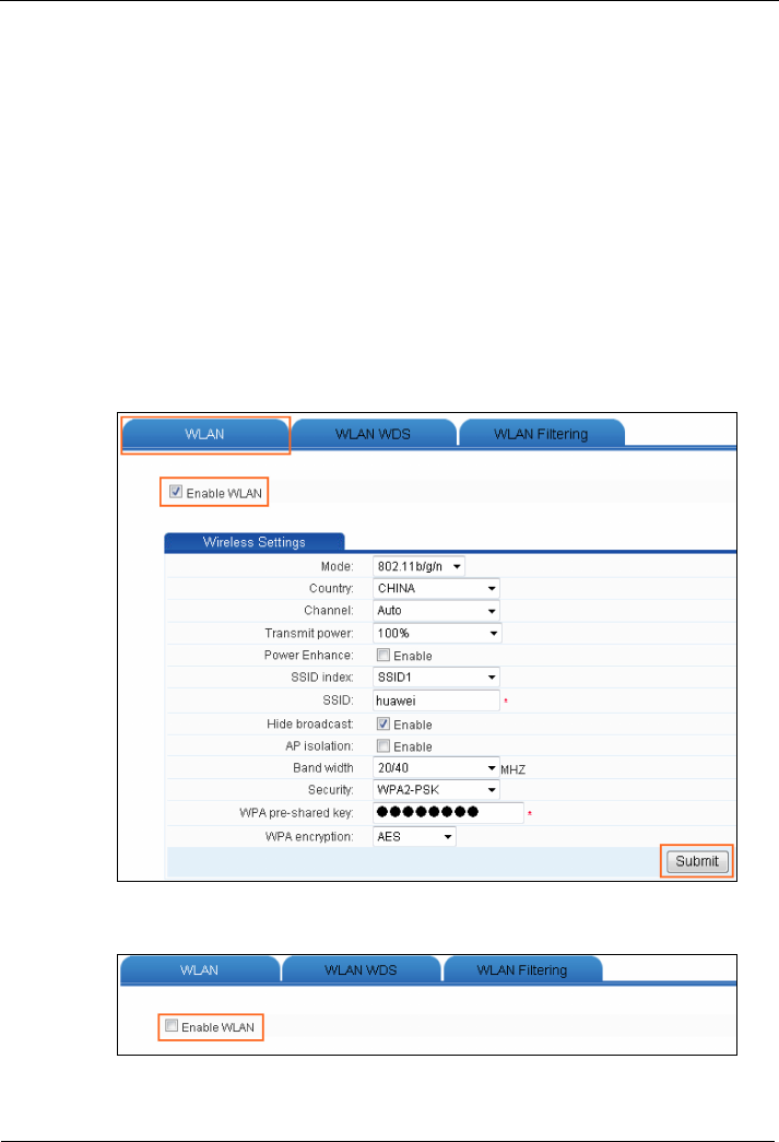 web management page, choose Basic > WLAN, and select Enable WLAN.