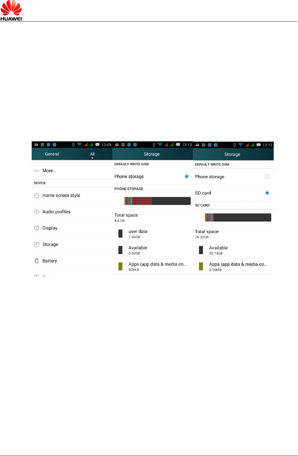 3.15 The phone's internal memory and micro SD card