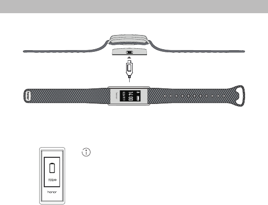 连接充电座和手机充电器、智能插座或者电脑 USB 接口给手环充电,贴合充电底座金属触点,直到屏幕出现