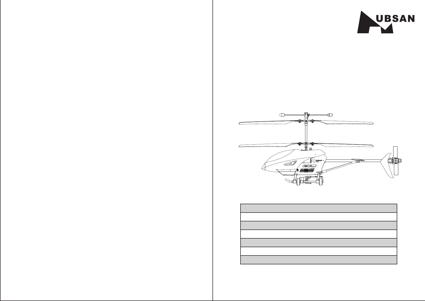 Thank you for buying HUBSAN products. The helicopter is designed as an easy to