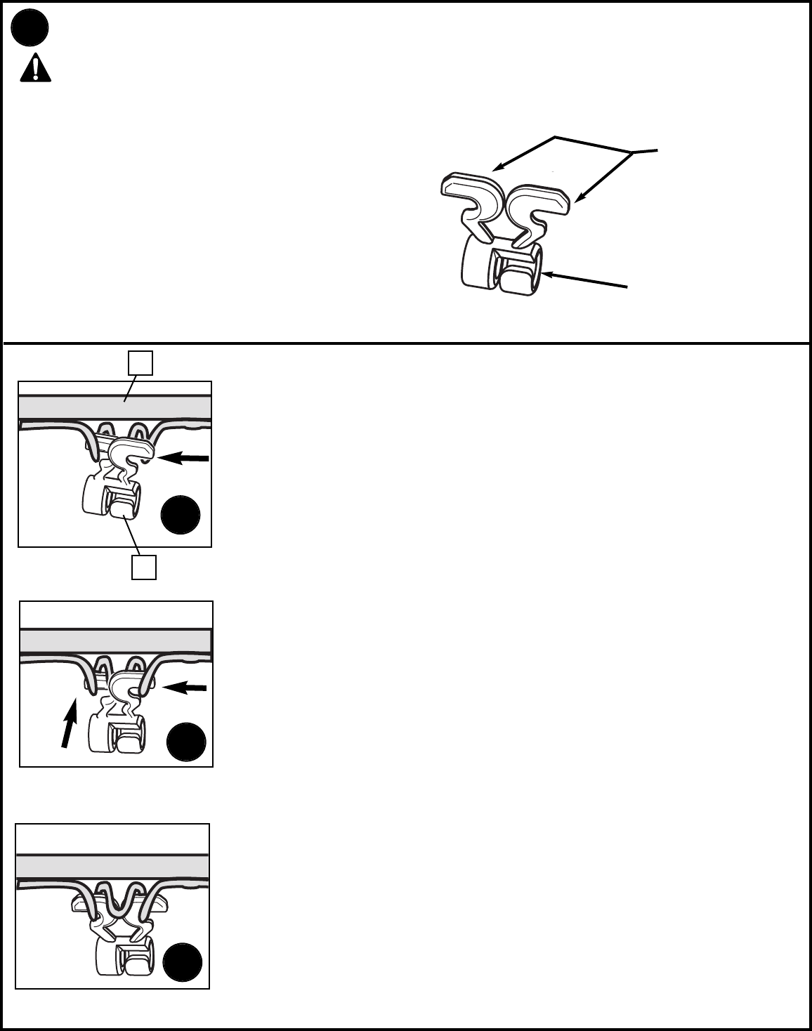 Clip “arms” must be flat and touching edge to edge as shown, not overlapping.