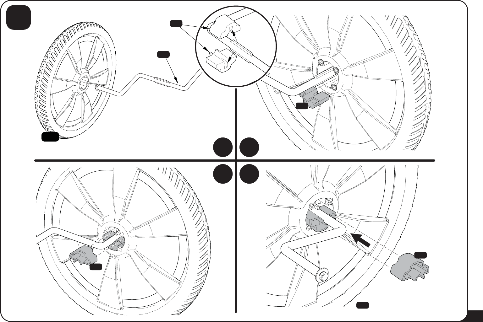 • The wingnuts must be securely tightened to ensure rear wheels do not come loose from the axle.