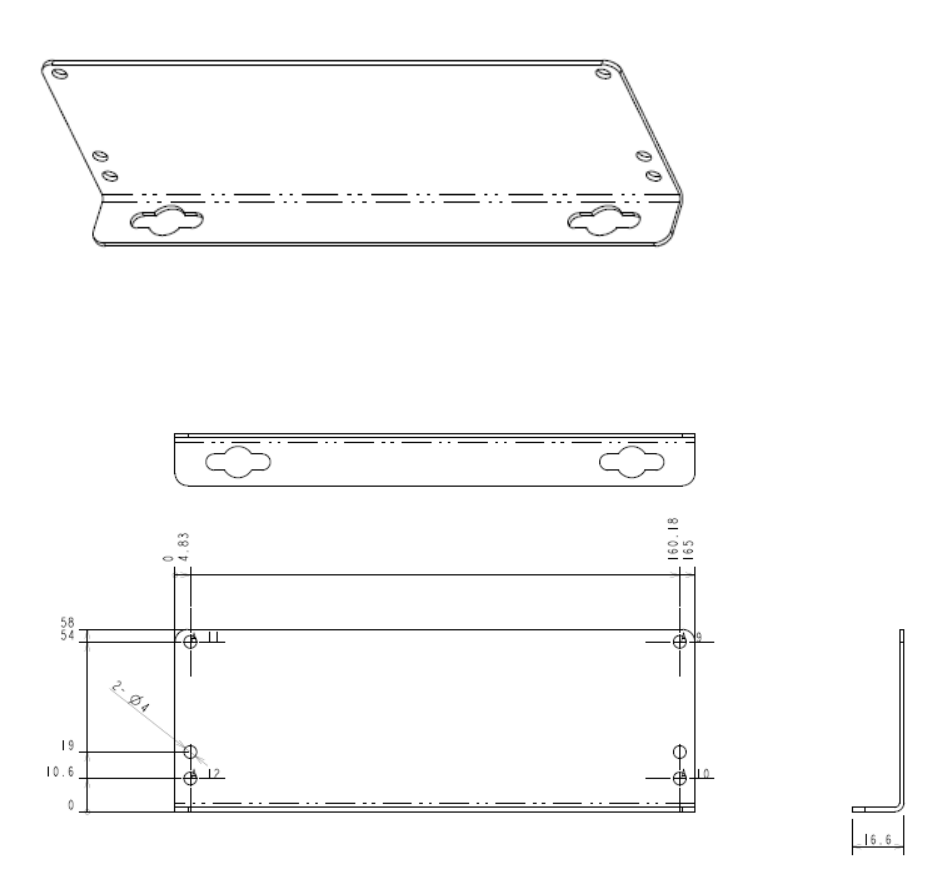 Figure 15 ICO MCAP TMG Mounting Bracket Bottom, Side View and Dimensions