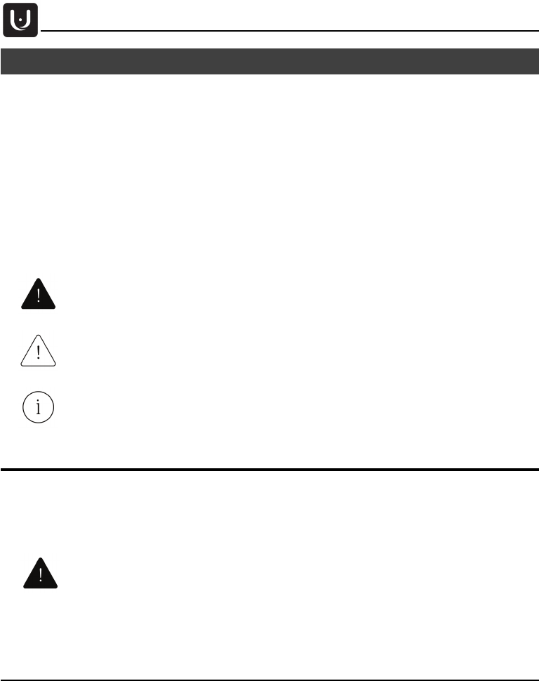 The following safety signs and symbols are used in the manual: