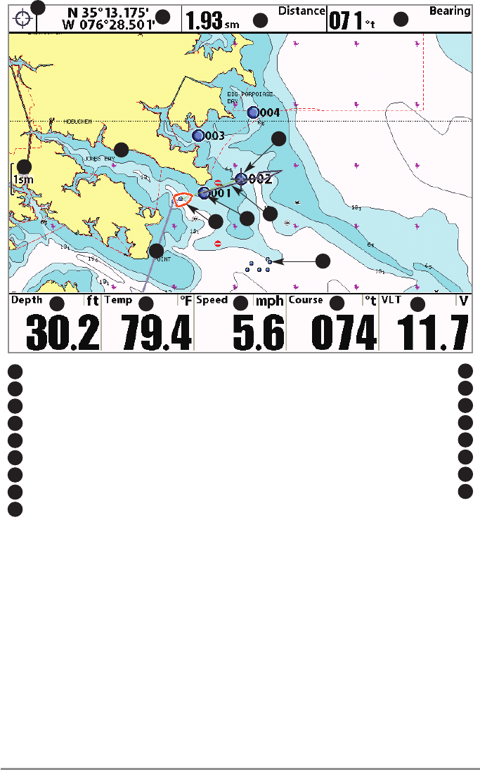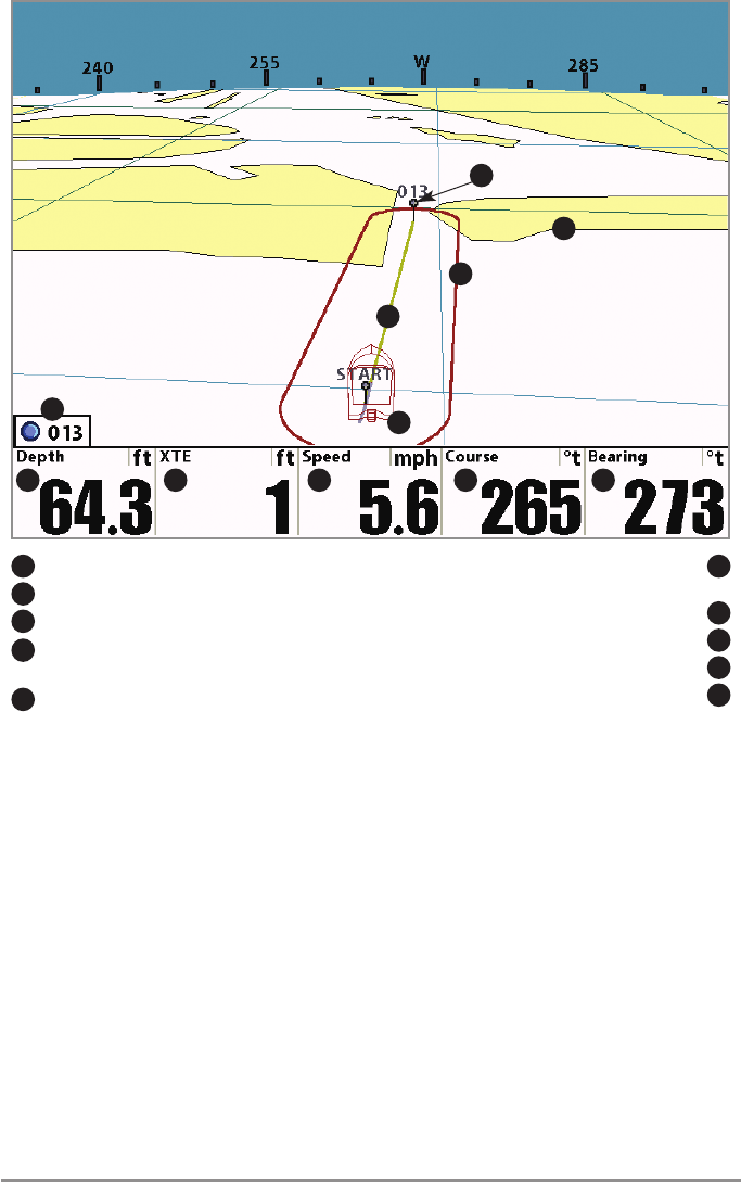 submerged structure. With Waypoint Targets, a quick look at the screen lets you know how far off the