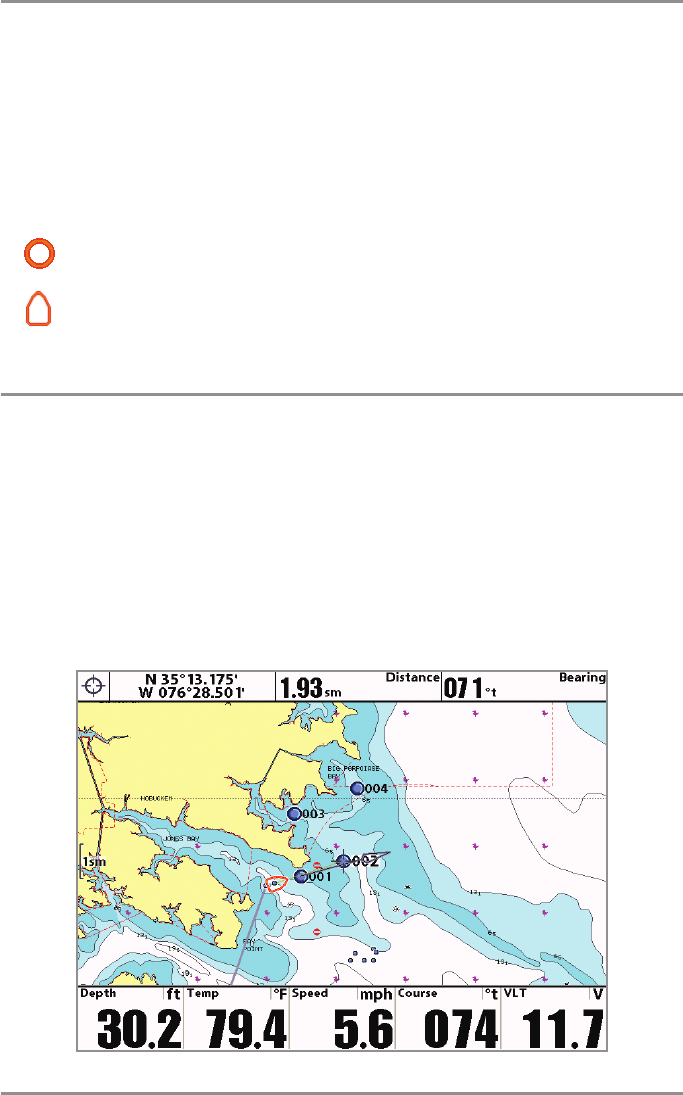 points, and saved in the fishfinder’s memory. Routes are often used when frequently traveling between two