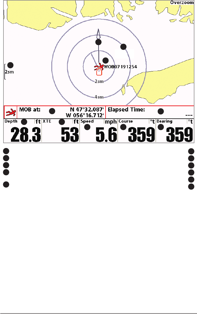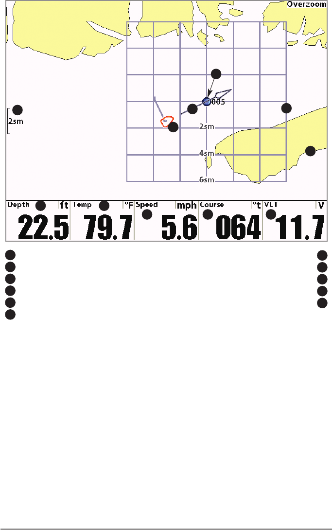 This bull’s eye is used to easily monitor boat position relative to a waypoint, and is useful for fishing over