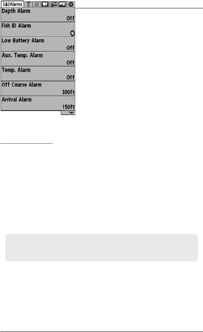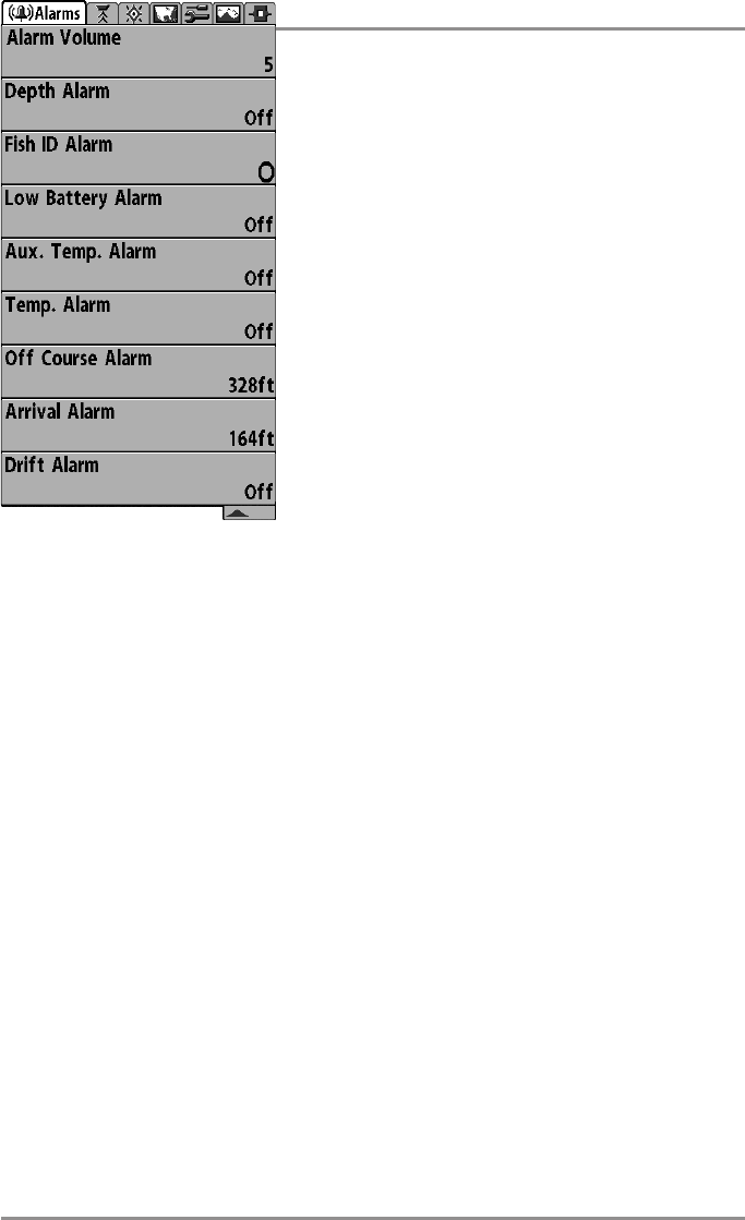 - Alarms Menu Tab