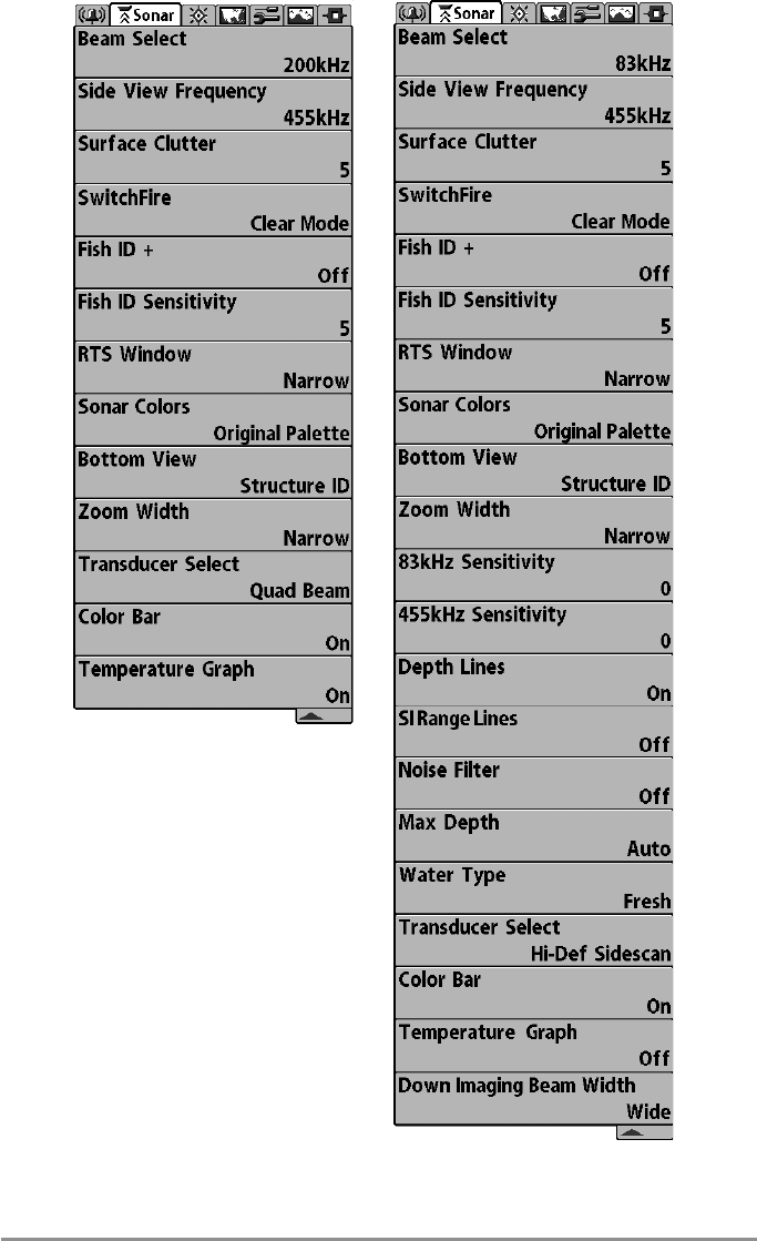 - Side Imaging® X-Press™ Menu