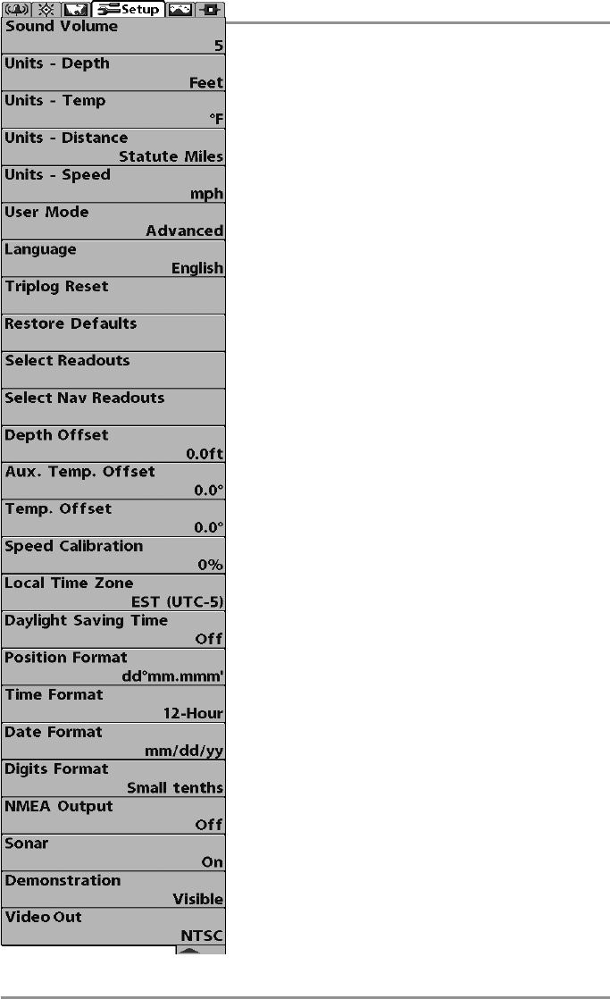 - Setup Menu Tab