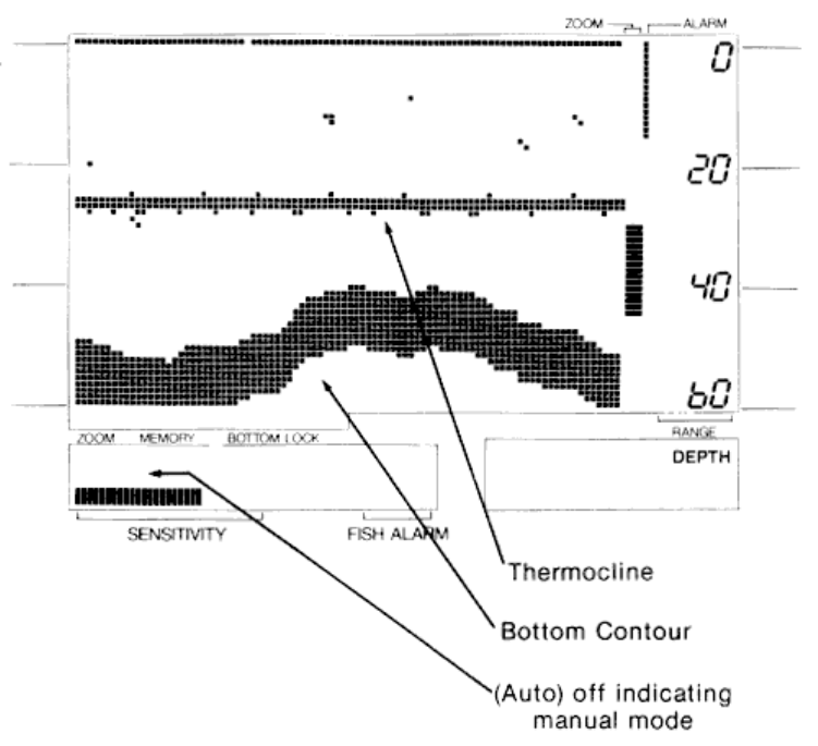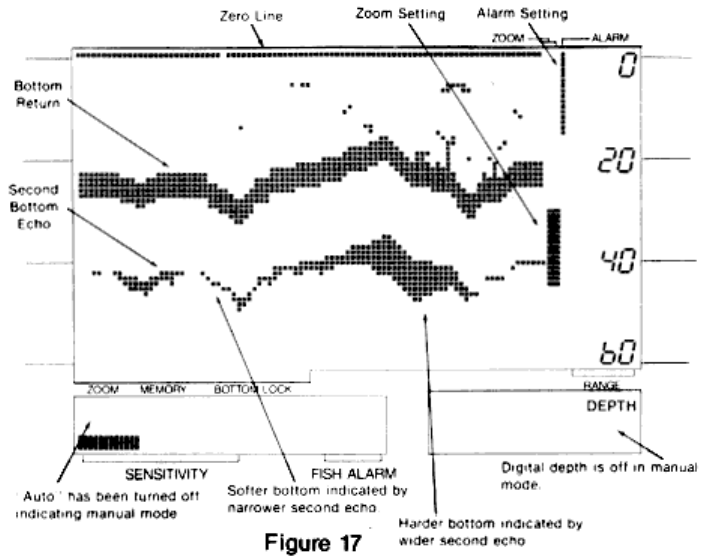 _A or * buttons. Notice that the digital bottom reading goes off in the manual mode. Note: In the