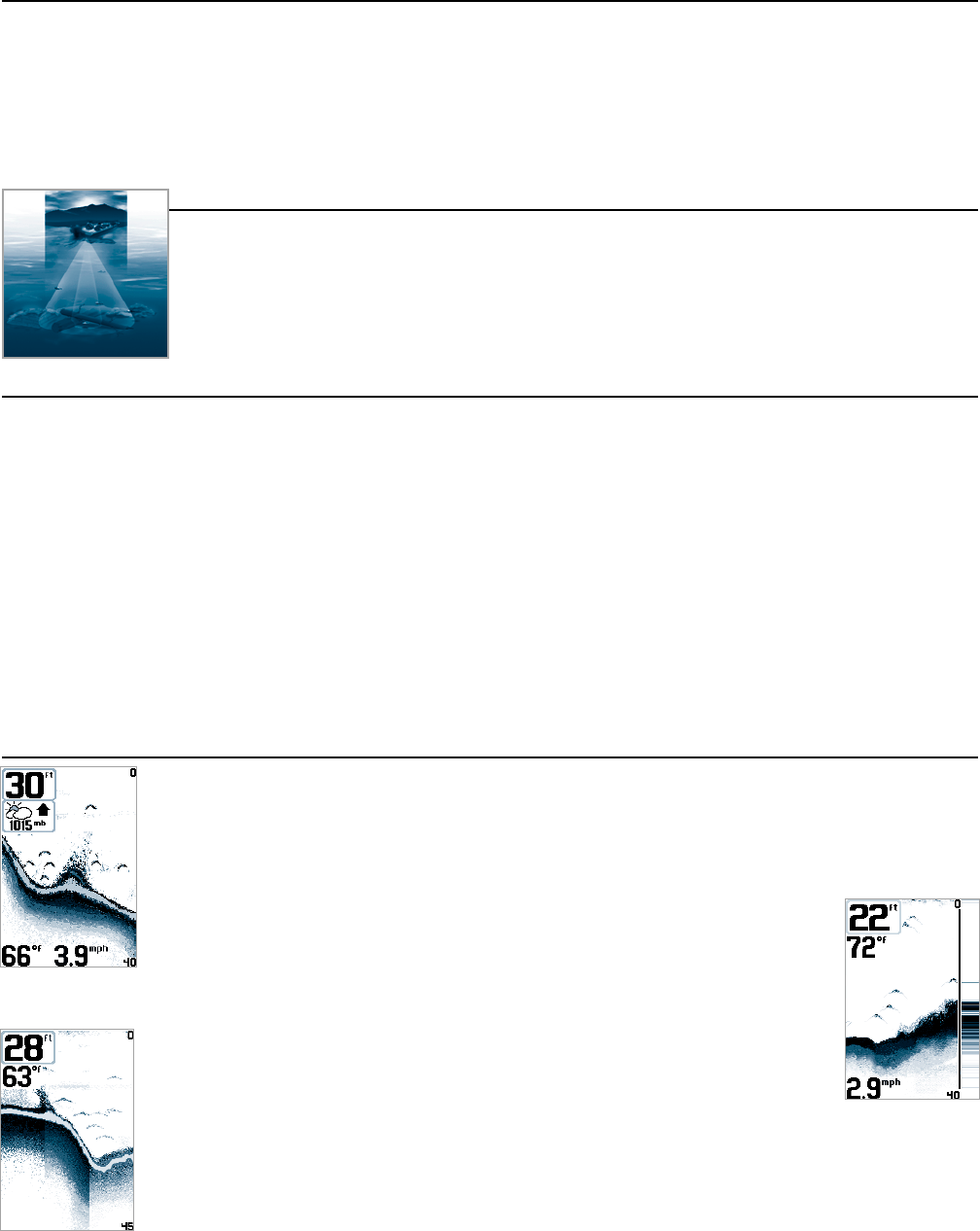 location with a wide (60°) beam. DualBeamPLUS is ideal for a wide range of conditions - from shallow to very deep water