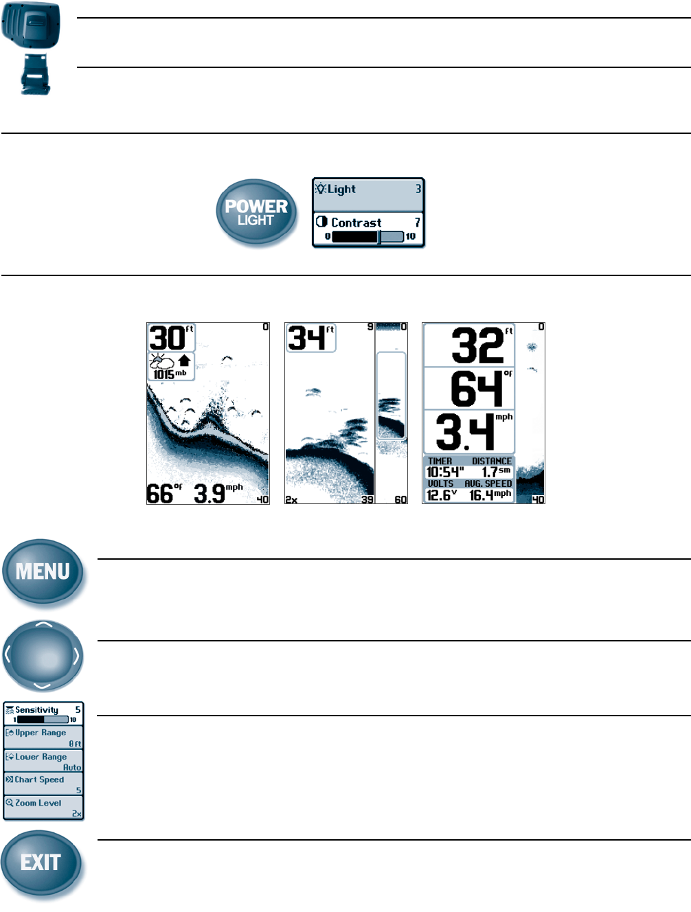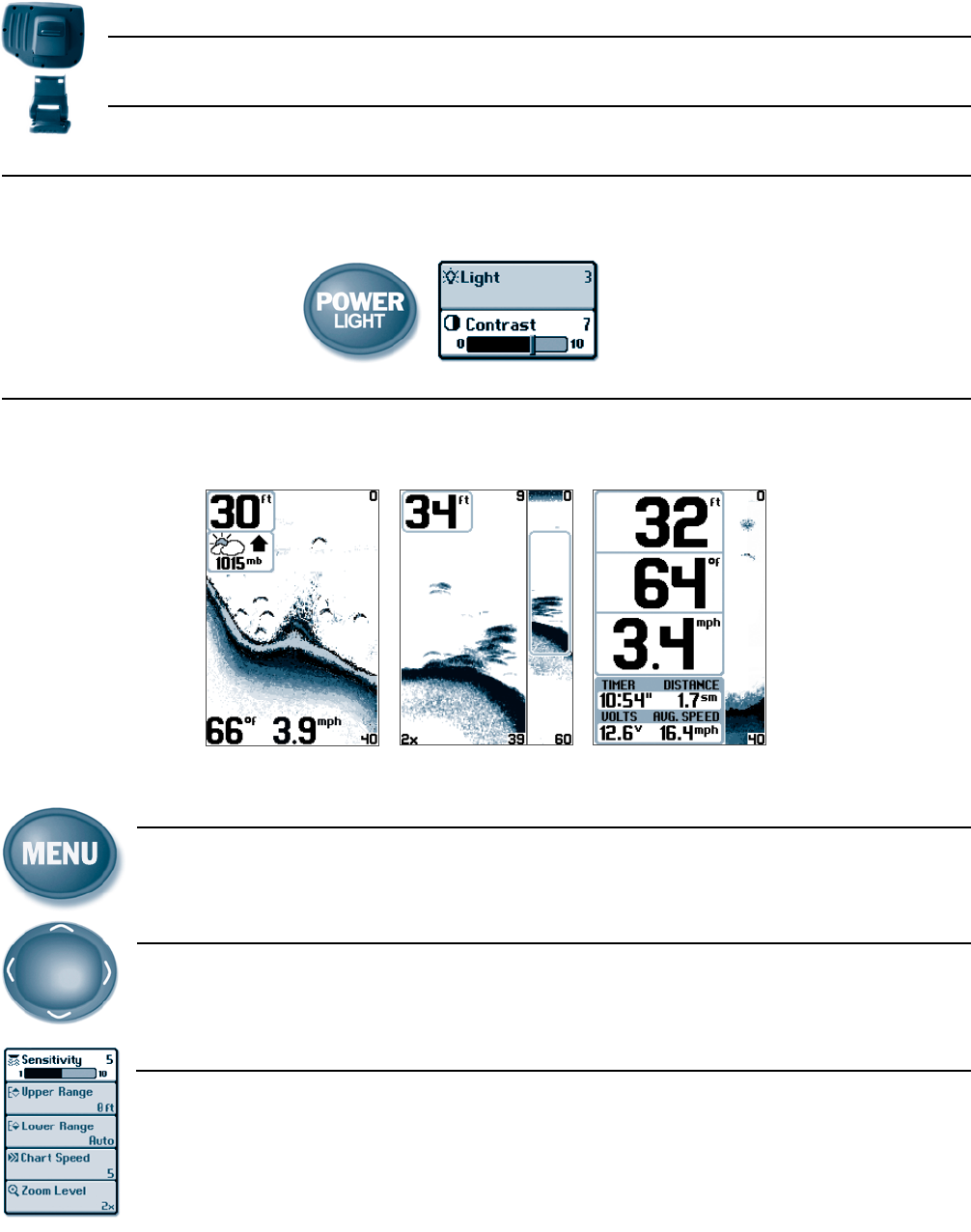 WARNING! This device should not be used as a navigational aid to prevent collision, grounding, boat damage, or personal injury. When the boat is moving, water depth