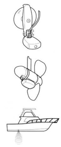 the transom of the boat. There are several mounting options for the transducer. Review