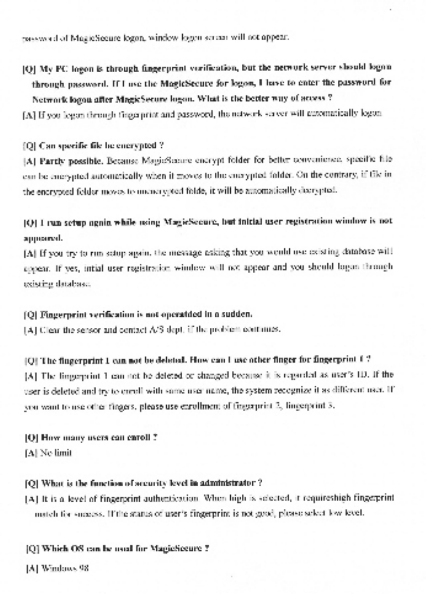 Hunno Technologies FP-2000 Magic Secure 2000 User Manual users manual