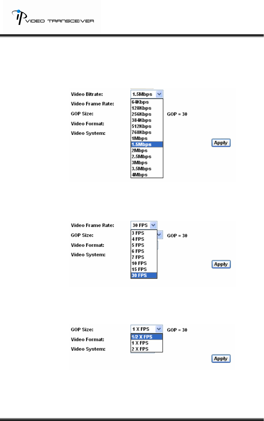 3. Video Bitrate:There are 13 Video Bitrates to select.